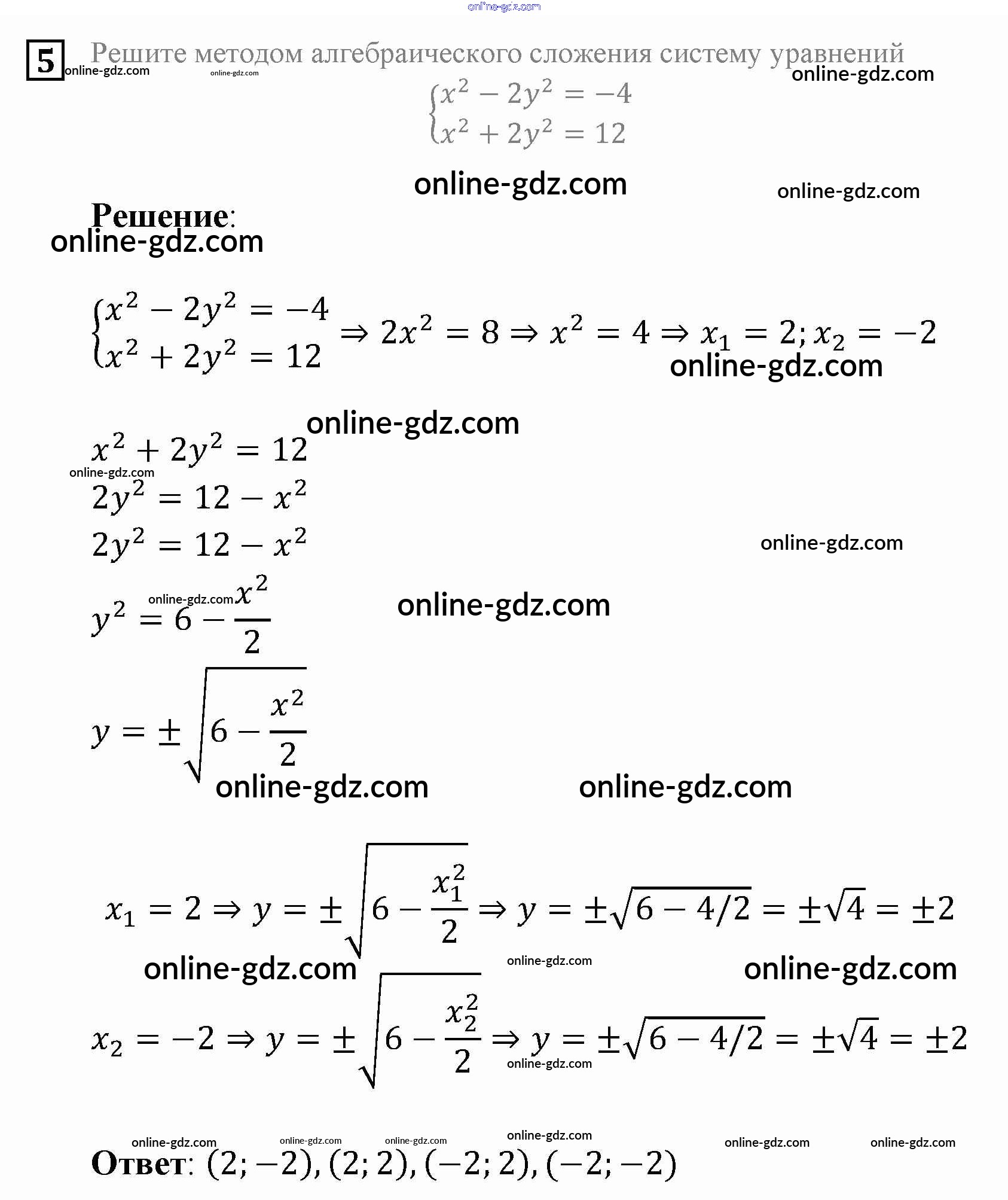 Готовые домашние задания по Алгебре за 9 класс Задачник Мордкович, Александрова 2010 - Вариант 1 Контрольная работа №2 5
