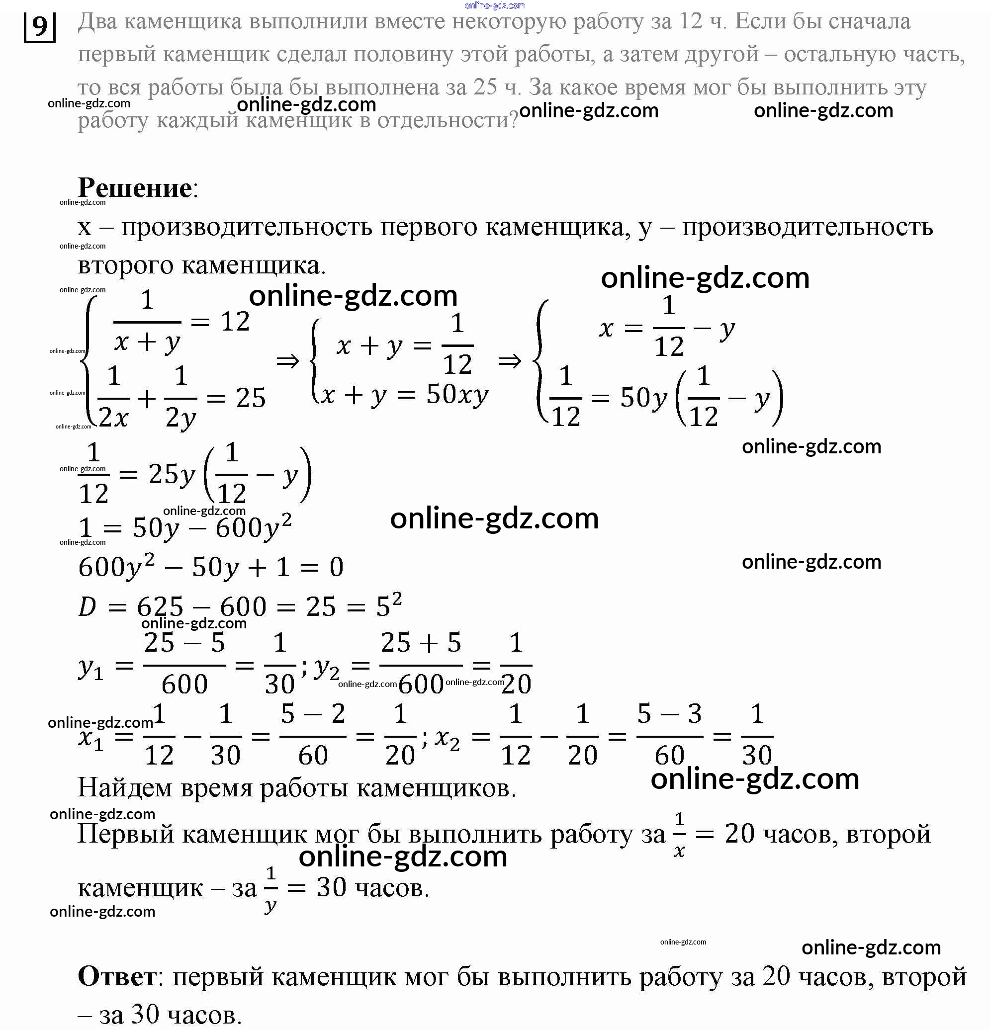 Готовые домашние задания по Алгебре за 9 класс Задачник Мордкович, Александрова 2010 - Вариант 1 Контрольная работа №2 9