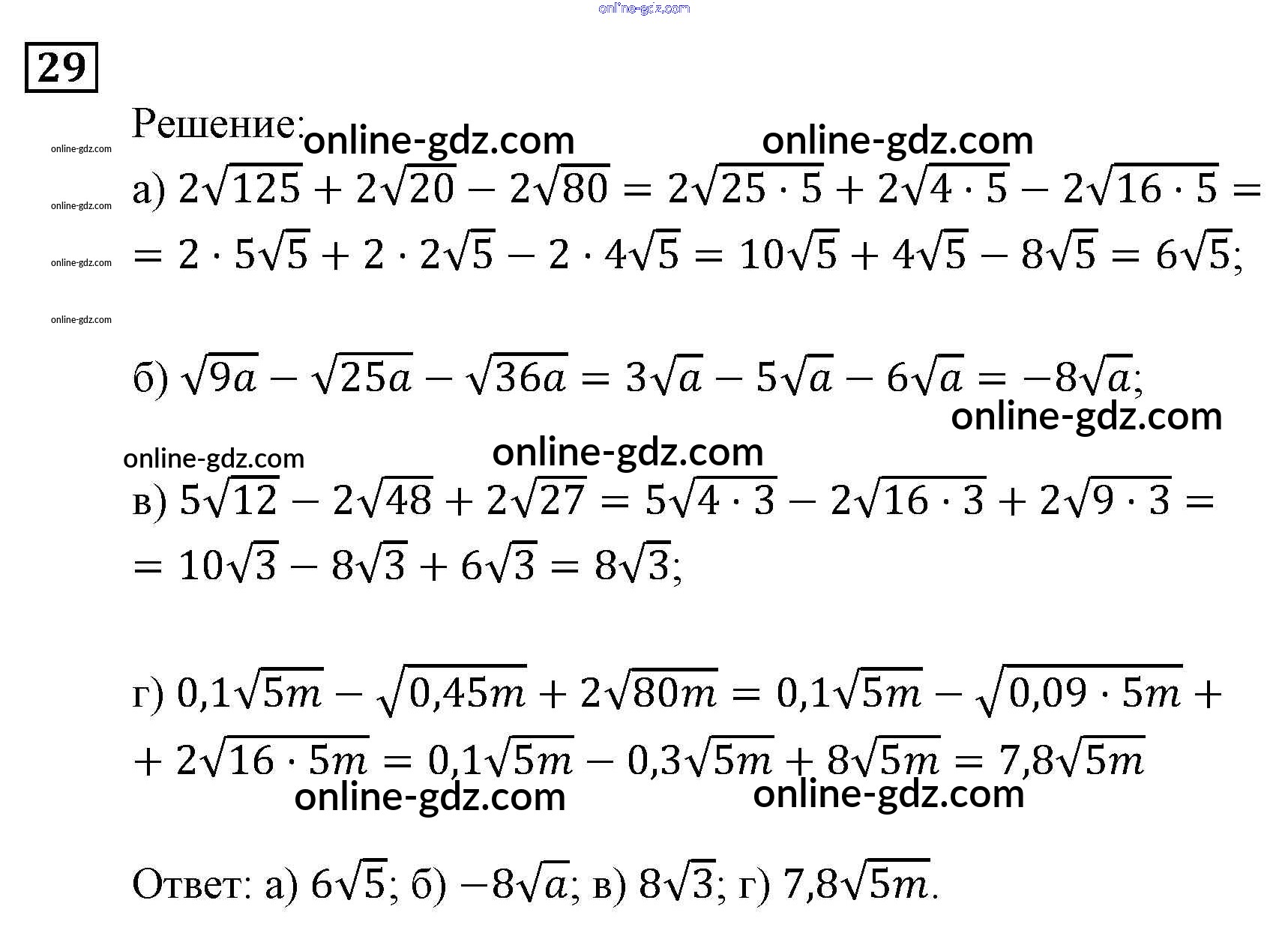 Готовые домашние задания по Алгебре за 9 класс Задачник Мордкович, Александрова 2010 - Повторение 29
