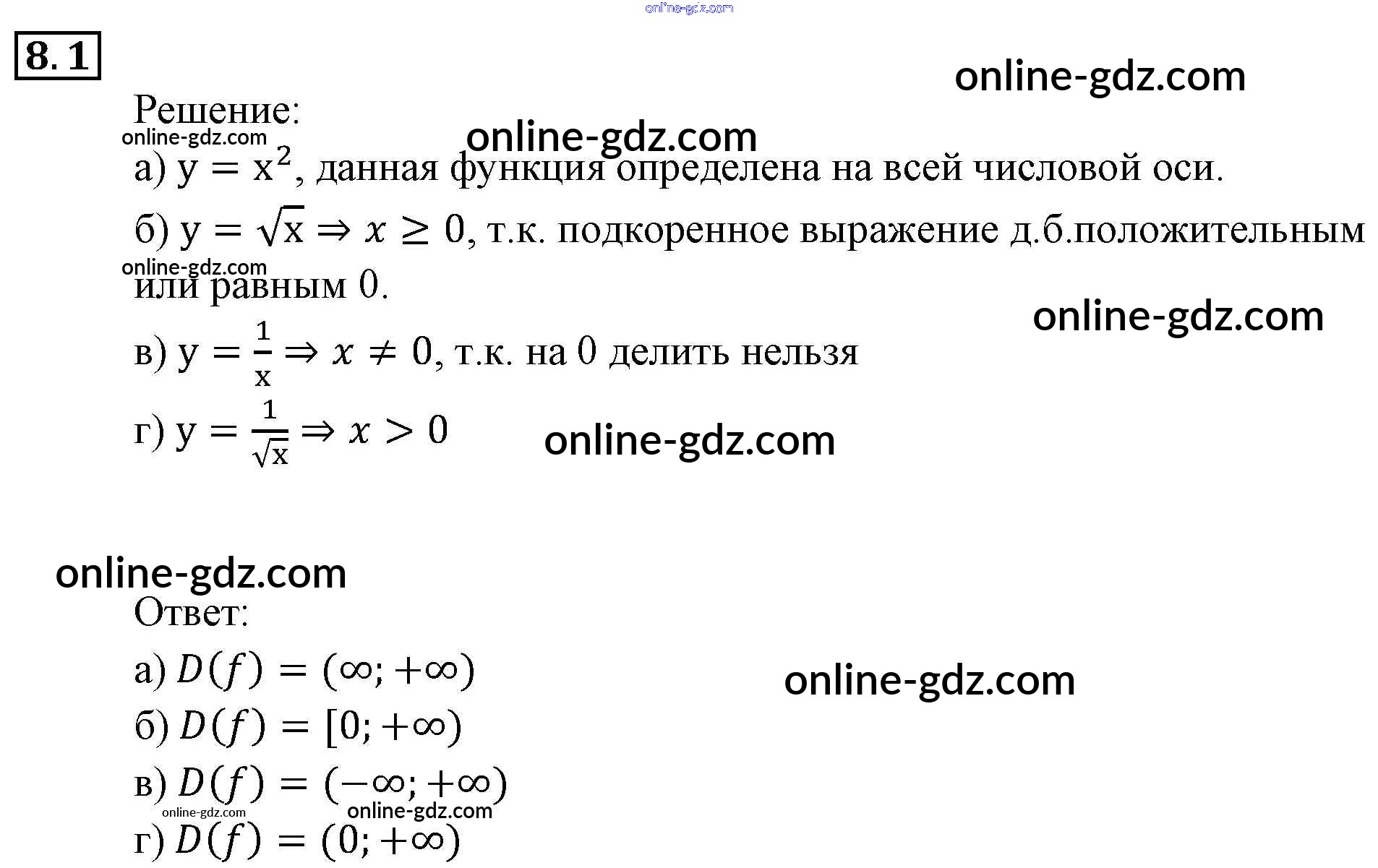 Готовые домашние задания по Алгебре за 9 класс Задачник Мордкович, Александрова 2010 - § 8. Определение числовой функции. Область определения, область значений функции Глава 3. Числовые функции 8.1