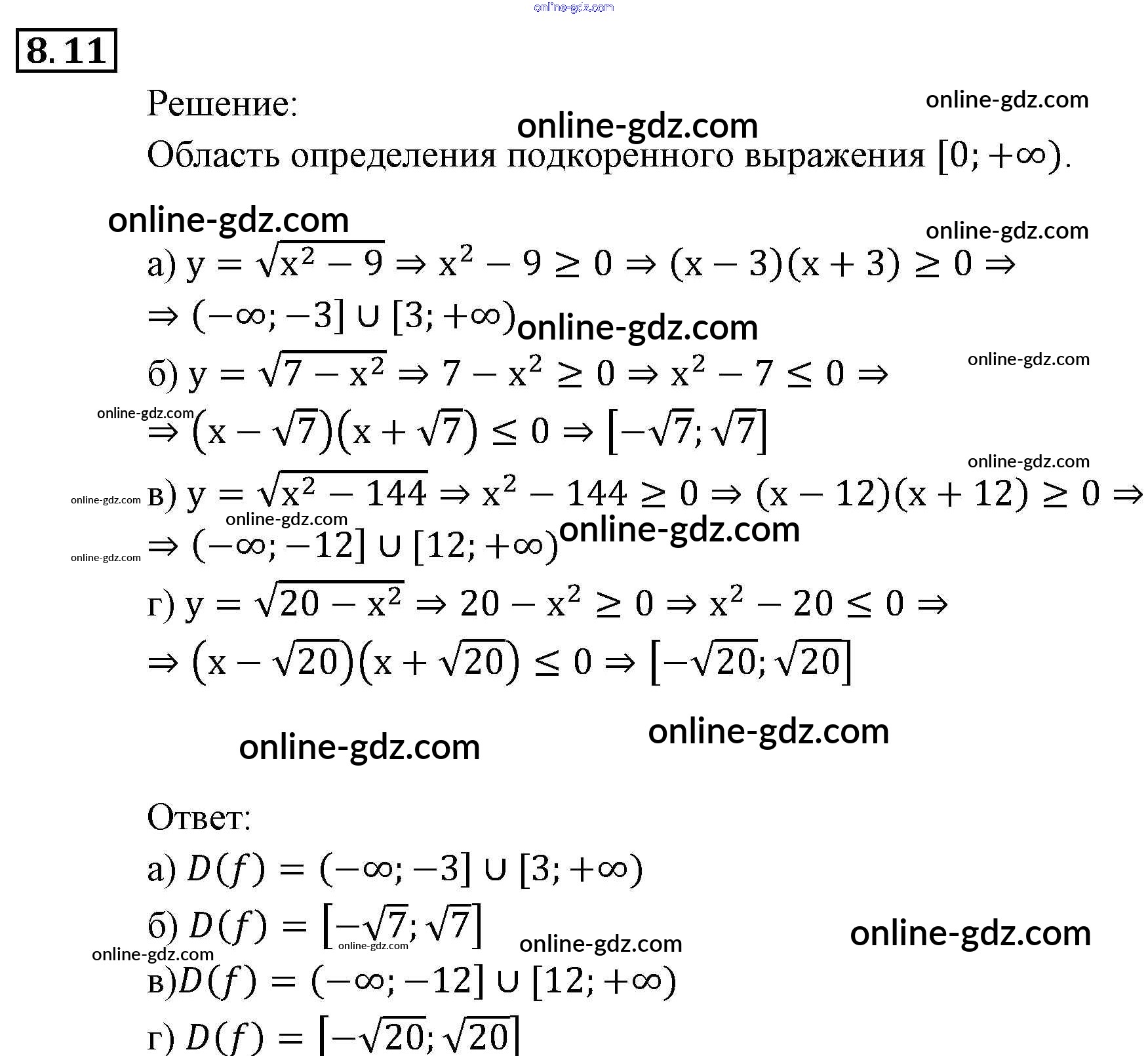 Готовые домашние задания по Алгебре за 9 класс Задачник Мордкович, Александрова 2010 - § 8. Определение числовой функции. Область определения, область значений функции Глава 3. Числовые функции 8.11