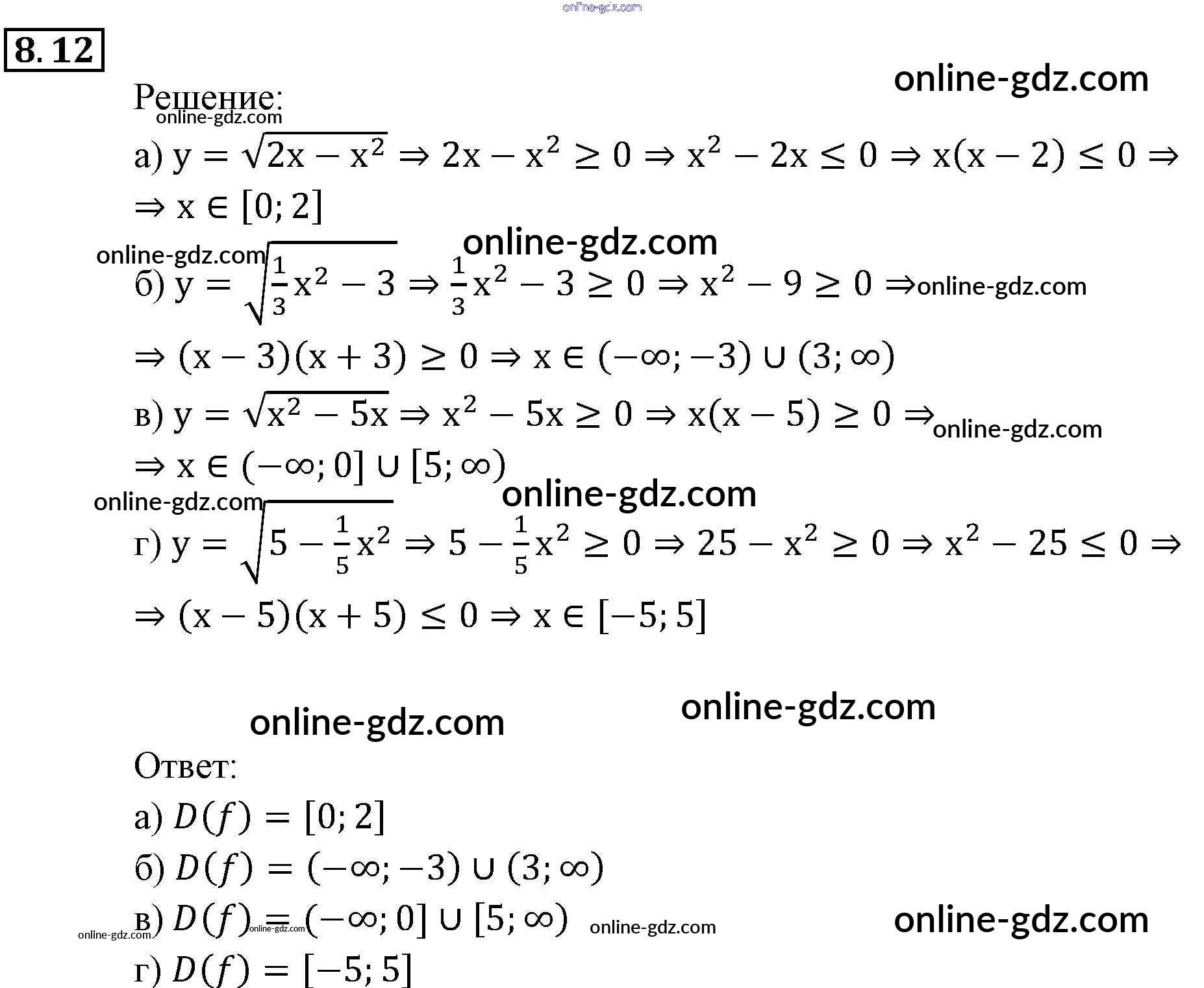 Готовые домашние задания по Алгебре за 9 класс Задачник Мордкович, Александрова 2010 - § 8. Определение числовой функции. Область определения, область значений функции Глава 3. Числовые функции 8.12
