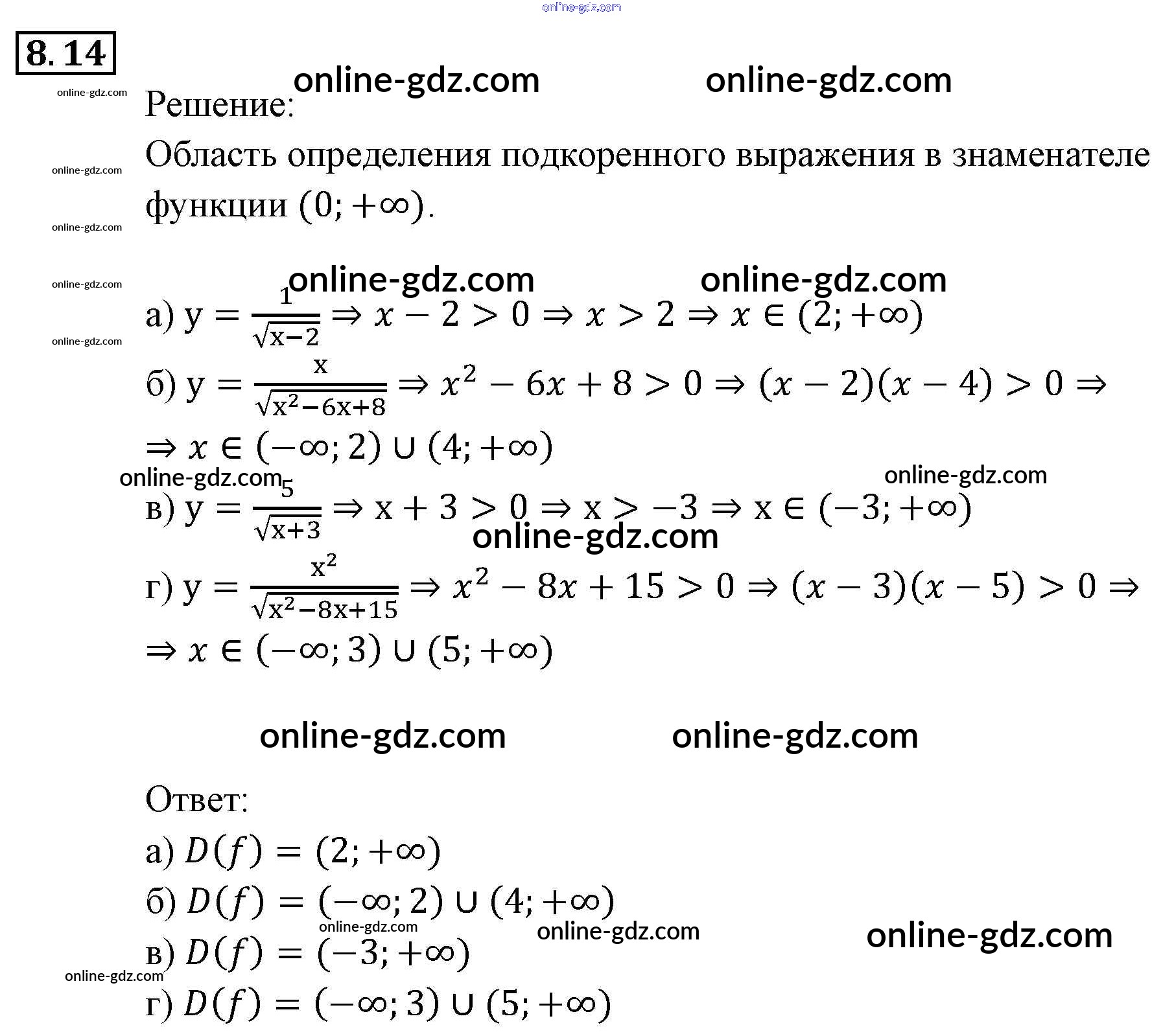 Готовые домашние задания по Алгебре за 9 класс Задачник Мордкович, Александрова 2010 - § 8. Определение числовой функции. Область определения, область значений функции Глава 3. Числовые функции 8.14
