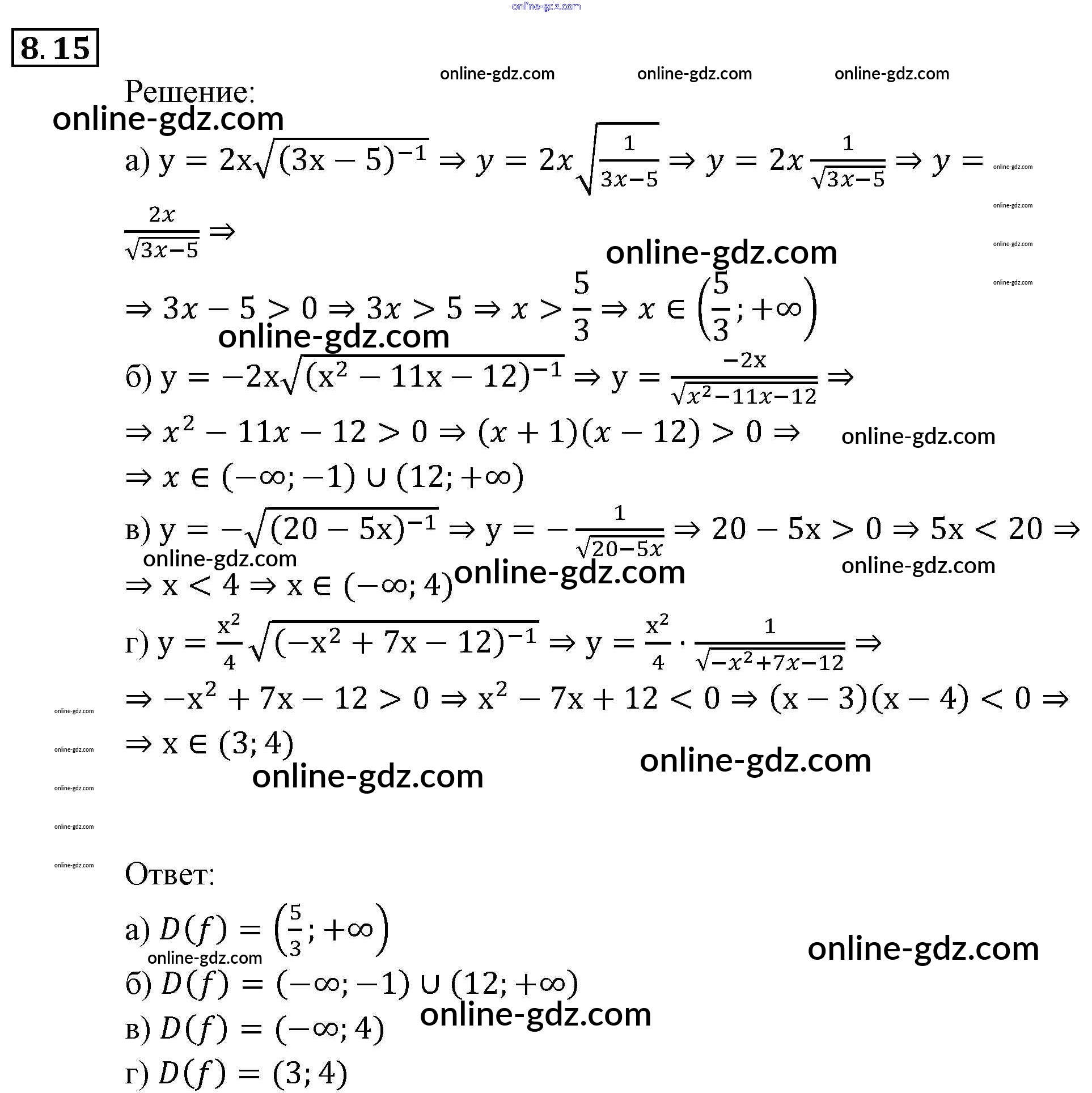 Готовые домашние задания по Алгебре за 9 класс Задачник Мордкович, Александрова 2010 - § 8. Определение числовой функции. Область определения, область значений функции Глава 3. Числовые функции 8.15
