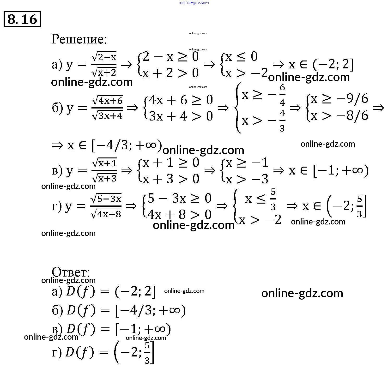 Готовые домашние задания по Алгебре за 9 класс Задачник Мордкович, Александрова 2010 - § 8. Определение числовой функции. Область определения, область значений функции Глава 3. Числовые функции 8.16