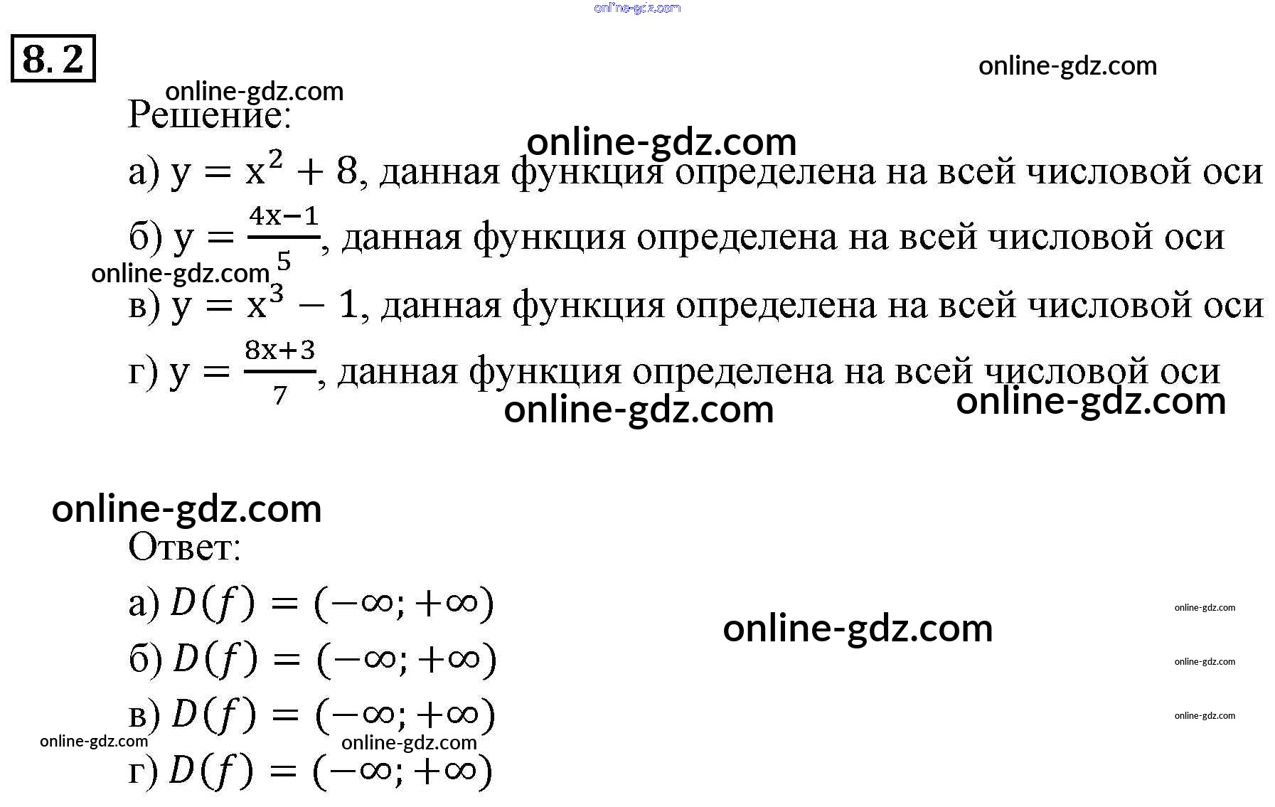 Готовые домашние задания по Алгебре за 9 класс Задачник Мордкович, Александрова 2010 - § 8. Определение числовой функции. Область определения, область значений функции Глава 3. Числовые функции 8.2