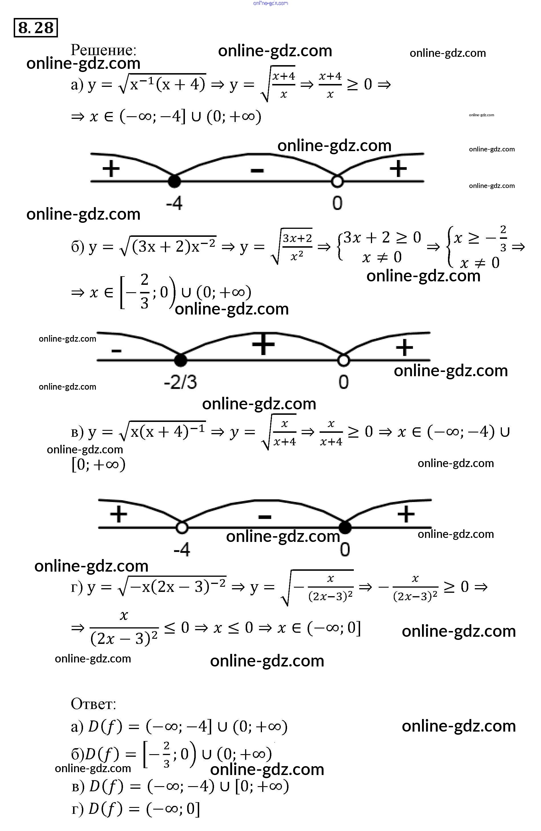 Готовые домашние задания по Алгебре за 9 класс Задачник Мордкович, Александрова 2010 - § 8. Определение числовой функции. Область определения, область значений функции Глава 3. Числовые функции 8.28