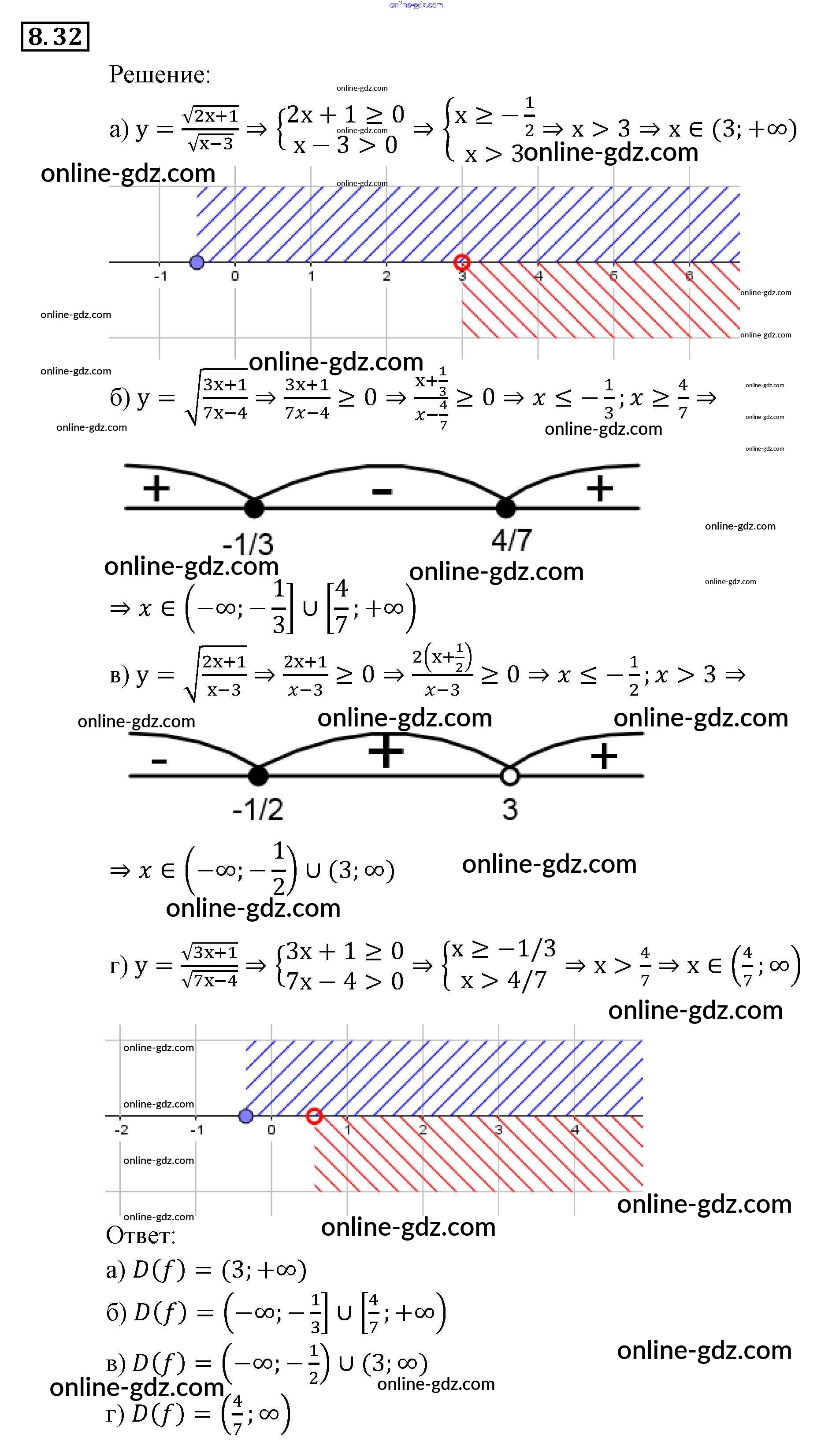 Готовые домашние задания по Алгебре за 9 класс Задачник Мордкович, Александрова 2010 - § 8. Определение числовой функции. Область определения, область значений функции Глава 3. Числовые функции 8.32