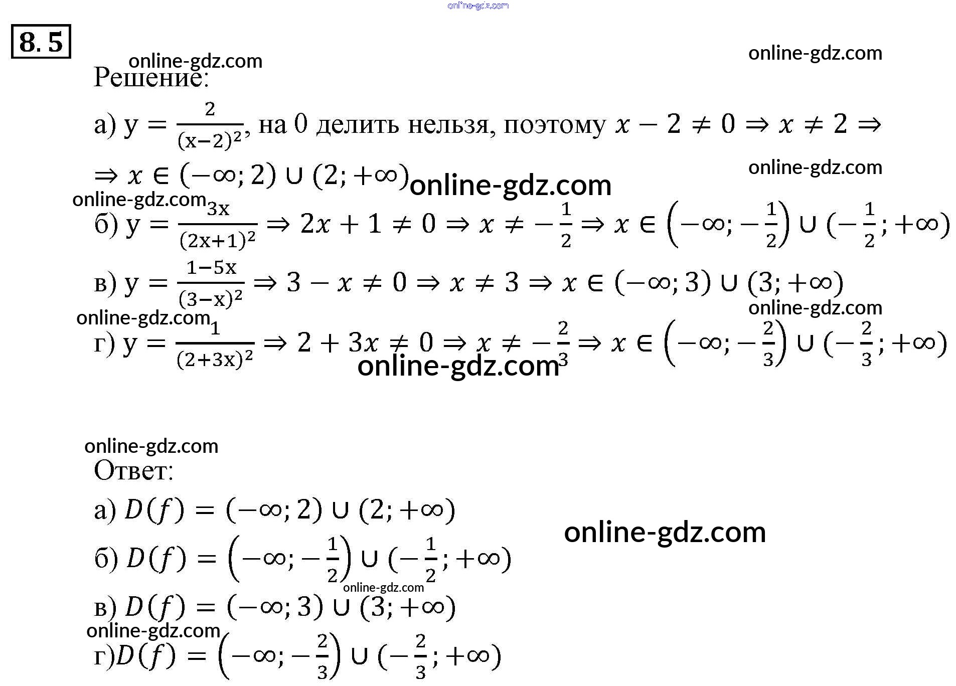 Готовые домашние задания по Алгебре за 9 класс Задачник Мордкович, Александрова 2010 - § 8. Определение числовой функции. Область определения, область значений функции Глава 3. Числовые функции 8.5