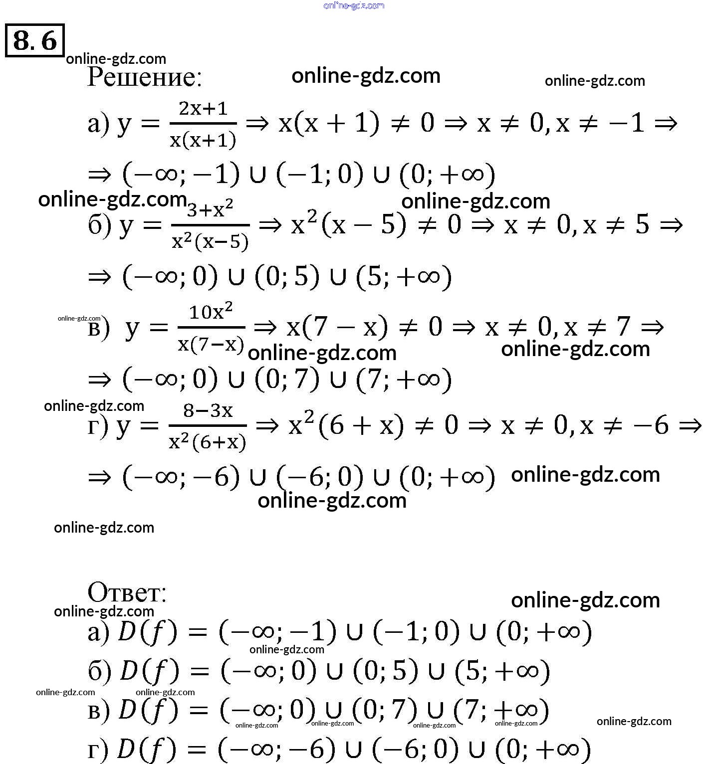 Готовые домашние задания по Алгебре за 9 класс Задачник Мордкович, Александрова 2010 - § 8. Определение числовой функции. Область определения, область значений функции Глава 3. Числовые функции 8.6