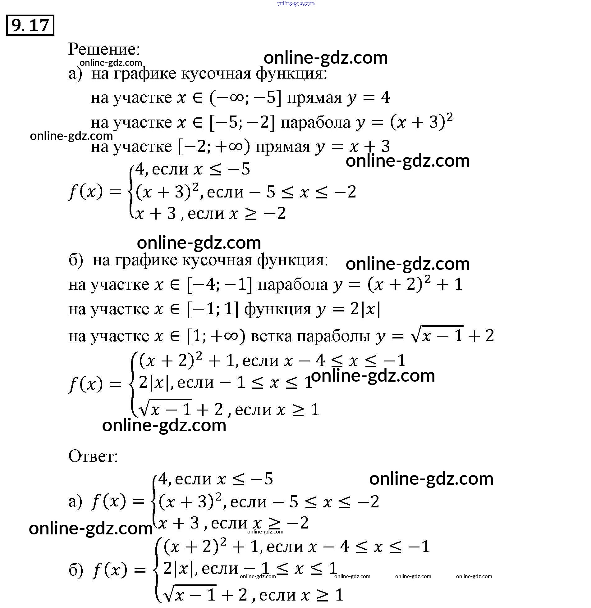 Готовые домашние задания по Алгебре за 9 класс Задачник Мордкович, Александрова 2010 - § 9. Способы задания функций Глава 3. Числовые функции 9.17