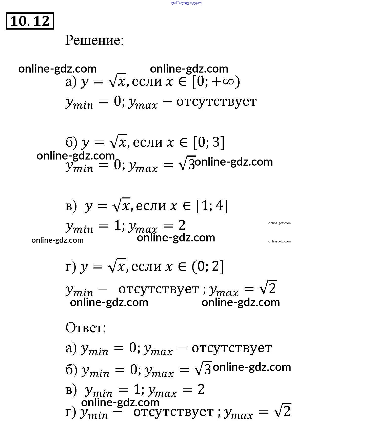 Готовые домашние задания по Алгебре за 9 класс Задачник Мордкович, Александрова 2010 - § 10. Свойства функций Глава 3. Числовые функции 10.12