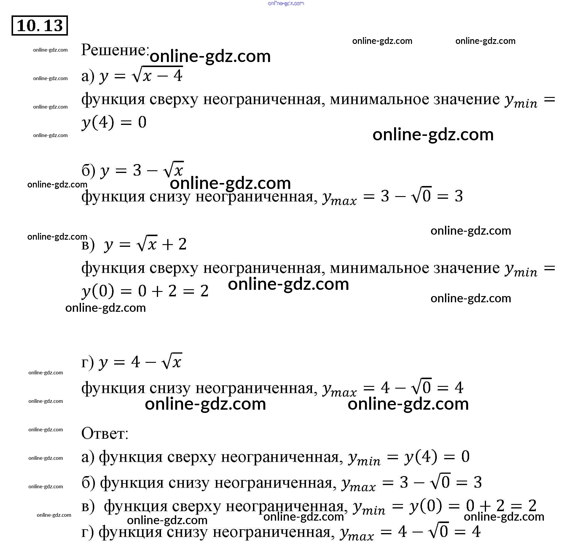 Готовые домашние задания по Алгебре за 9 класс Задачник Мордкович, Александрова 2010 - § 10. Свойства функций Глава 3. Числовые функции 10.13
