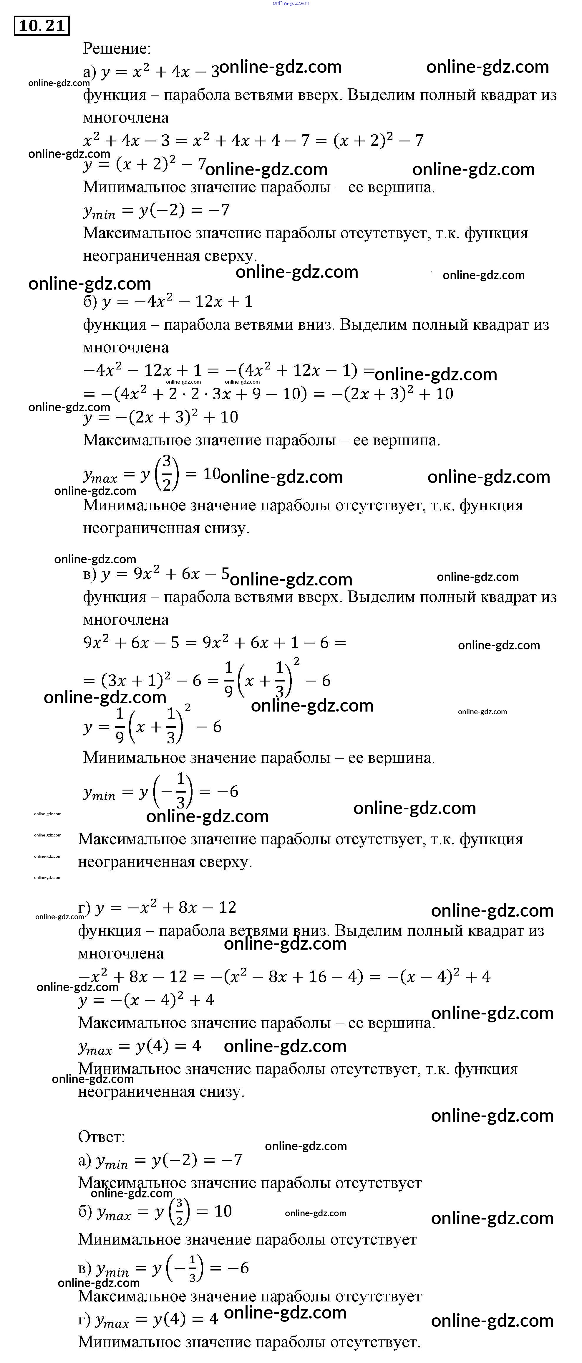 Готовые домашние задания по Алгебре за 9 класс Задачник Мордкович, Александрова 2010 - § 10. Свойства функций Глава 3. Числовые функции 10.21