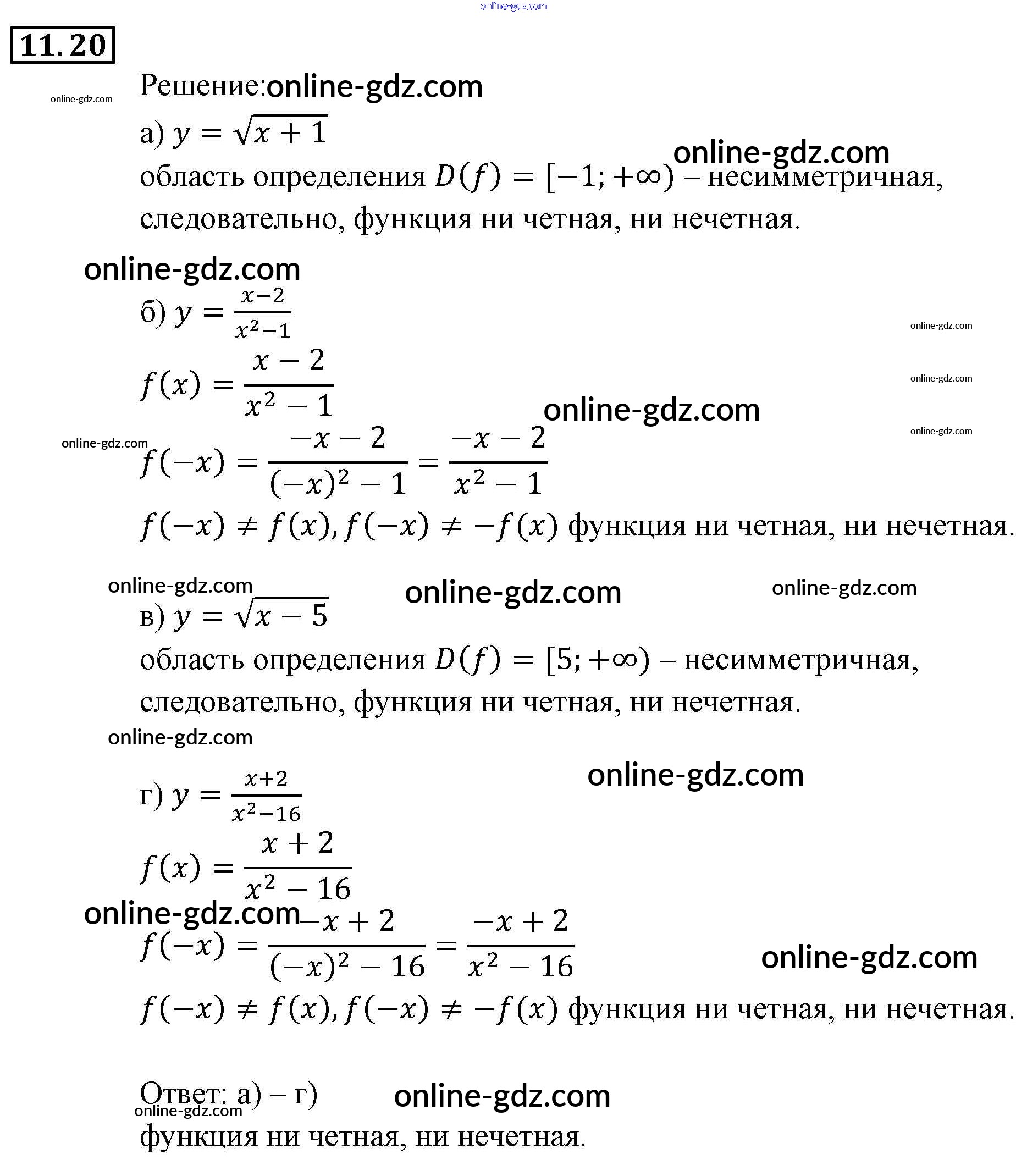 Готовые домашние задания по Алгебре за 9 класс Задачник Мордкович, Александрова 2010 - § 11. Честные и нечестные функции Глава 3. Числовые функции 11.20