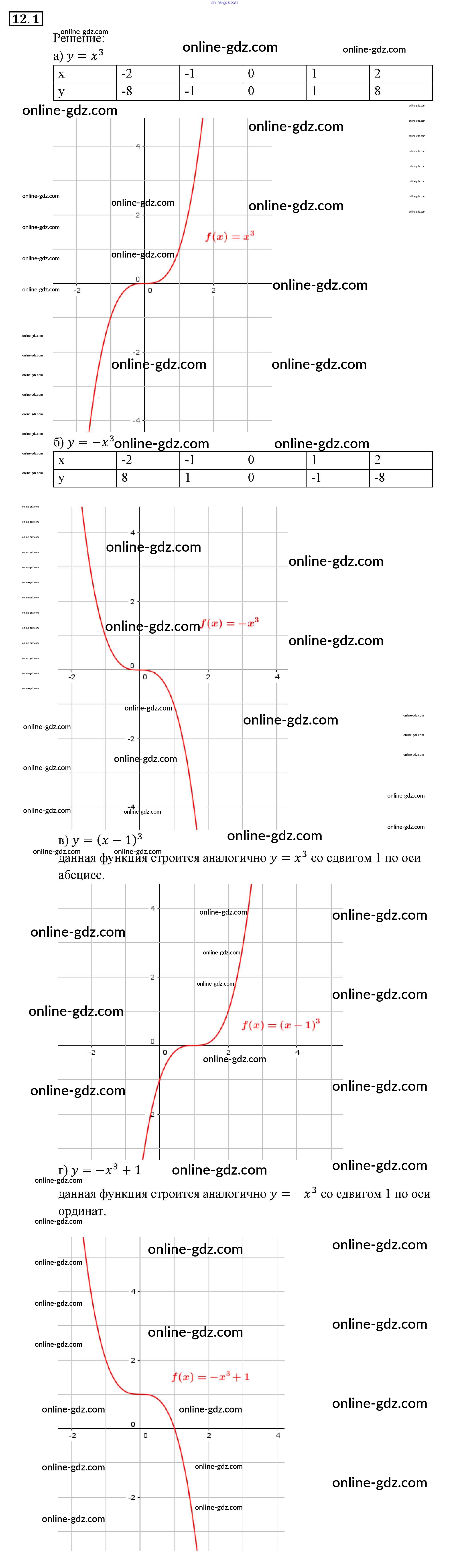 Готовые домашние задания по Алгебре за 9 класс Задачник Мордкович, Александрова 2010 - §12. Функции y = xⁿ (n ∈ N), их свойства и графики Глава 3. Числовые функции 12.1