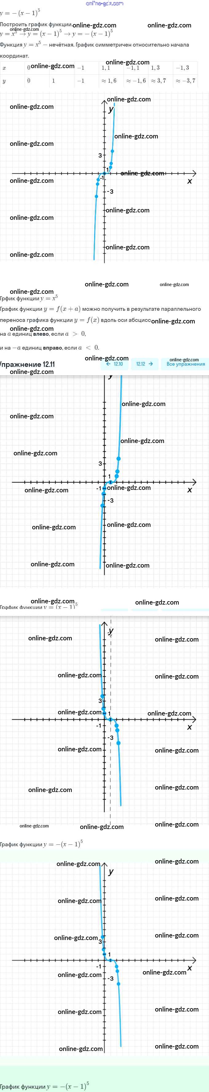Готовые домашние задания по Алгебре за 9 класс Задачник Мордкович, Александрова 2010 - §12. Функции y = xⁿ (n ∈ N), их свойства и графики Глава 3. Числовые функции 12.11