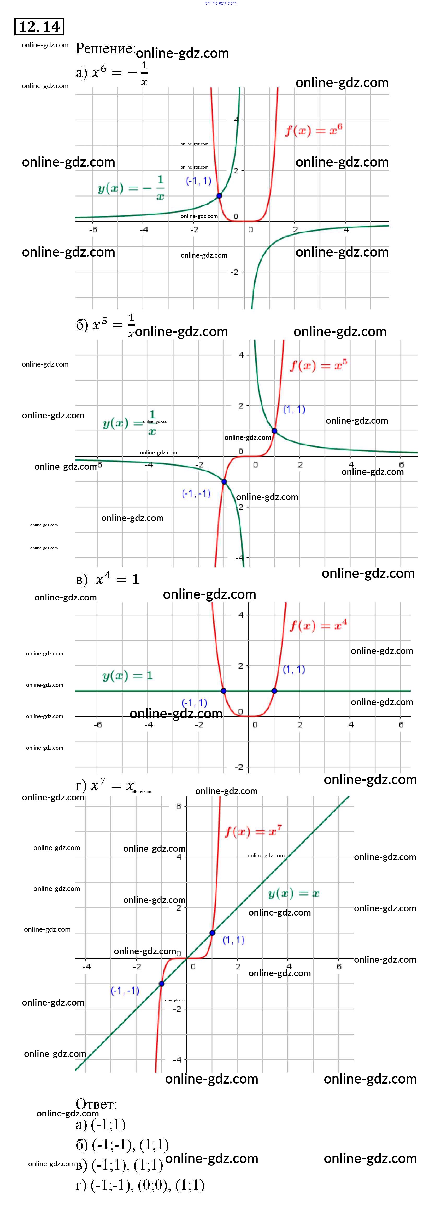 Готовые домашние задания по Алгебре за 9 класс Задачник Мордкович, Александрова 2010 - §12. Функции y = xⁿ (n ∈ N), их свойства и графики Глава 3. Числовые функции 12.14