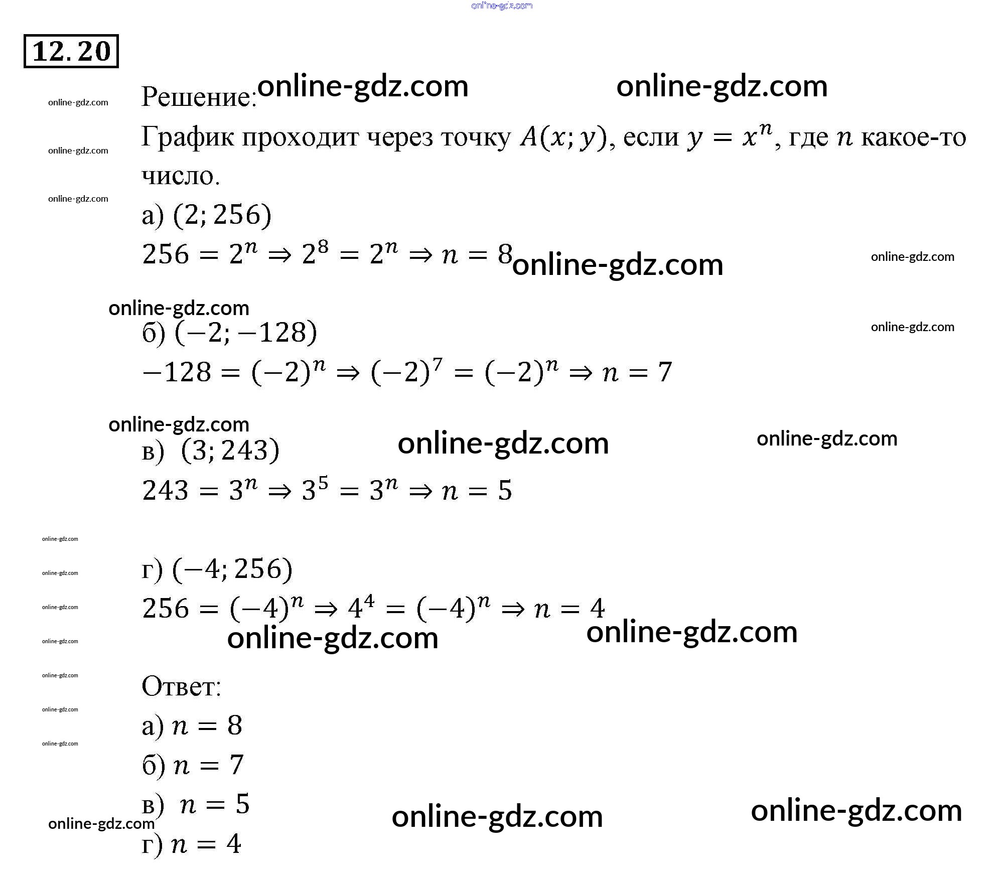 Готовые домашние задания по Алгебре за 9 класс Задачник Мордкович, Александрова 2010 - §12. Функции y = xⁿ (n ∈ N), их свойства и графики Глава 3. Числовые функции 12.20