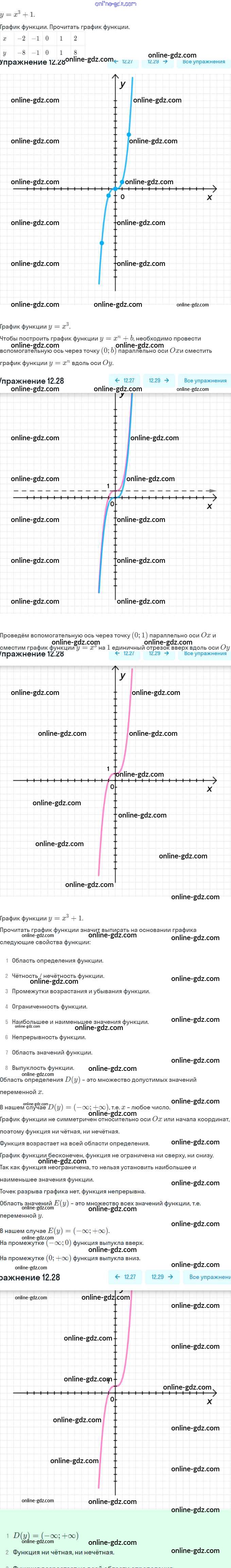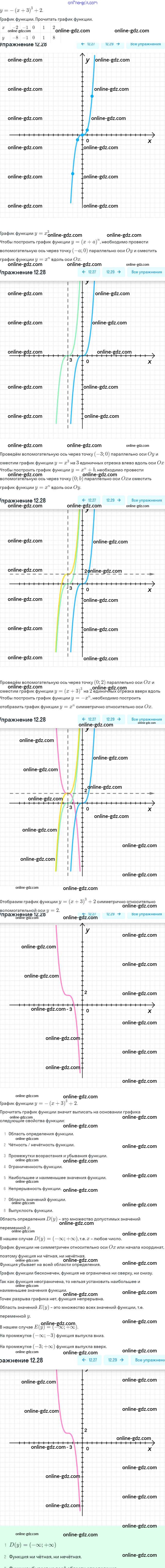 Готовые домашние задания по Алгебре за 9 класс Задачник Мордкович, Александрова 2010 - §12. Функции y = xⁿ (n ∈ N), их свойства и графики Глава 3. Числовые функции 12.28