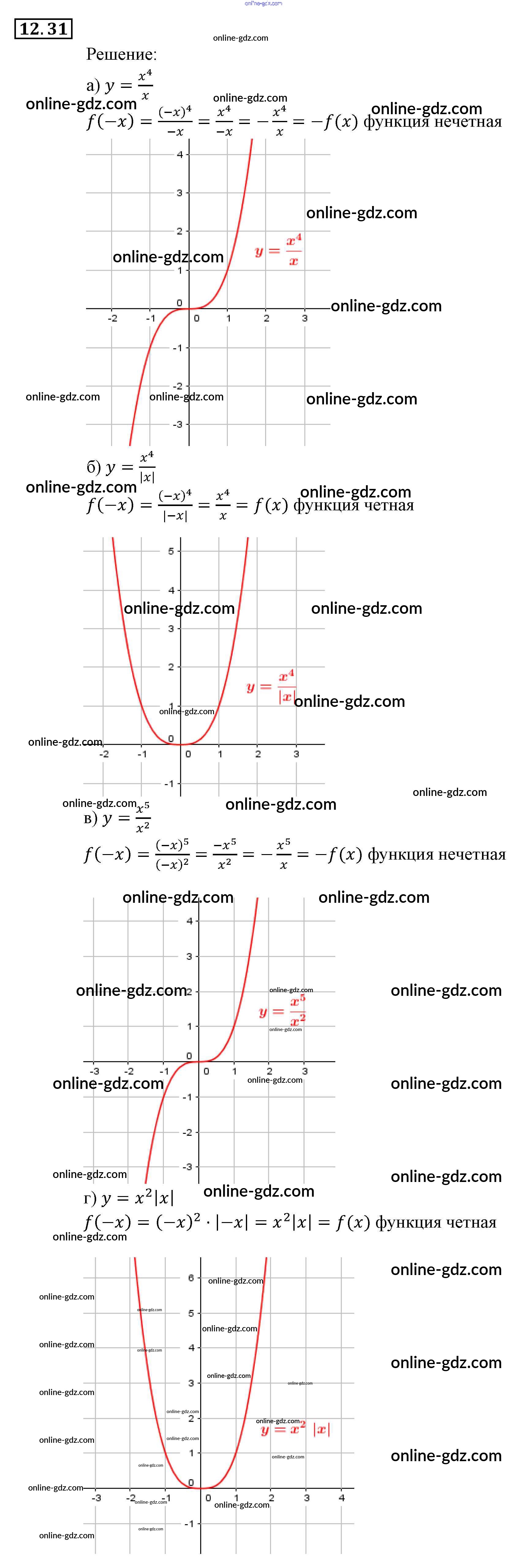 Готовые домашние задания по Алгебре за 9 класс Задачник Мордкович, Александрова 2010 - §12. Функции y = xⁿ (n ∈ N), их свойства и графики Глава 3. Числовые функции 12.31