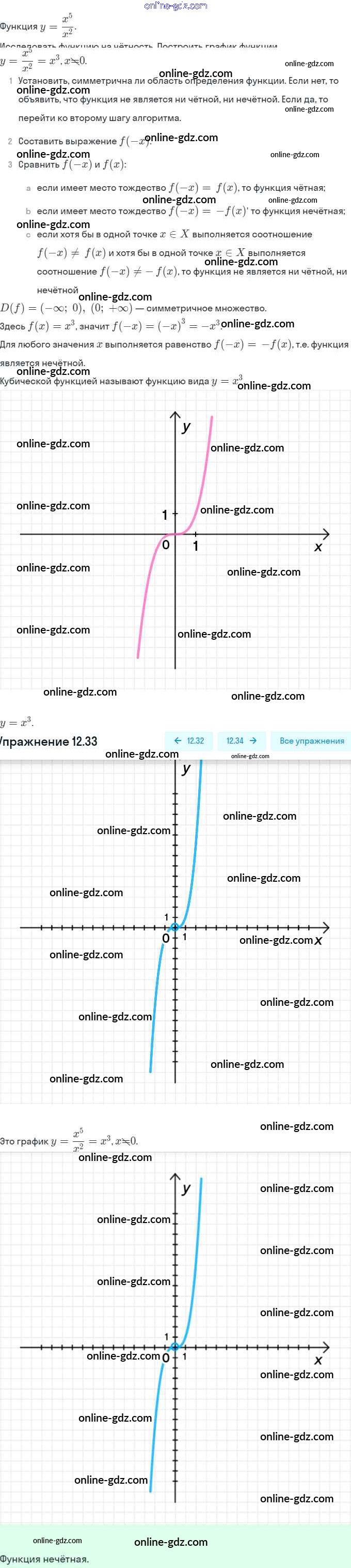 Готовые домашние задания по Алгебре за 9 класс Задачник Мордкович, Александрова 2010 - §12. Функции y = xⁿ (n ∈ N), их свойства и графики Глава 3. Числовые функции 12.33