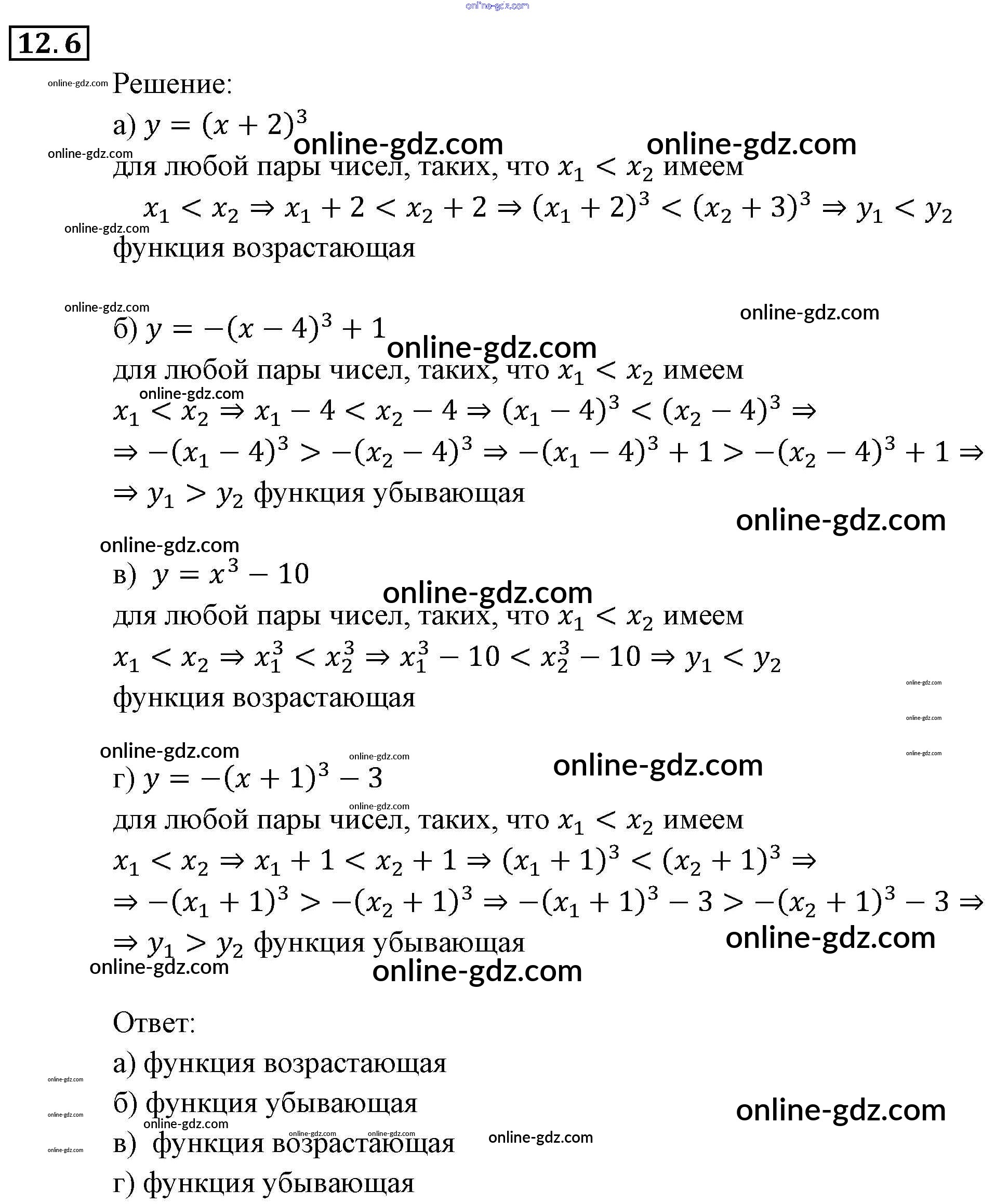 Готовые домашние задания по Алгебре за 9 класс Задачник Мордкович, Александрова 2010 - §12. Функции y = xⁿ (n ∈ N), их свойства и графики Глава 3. Числовые функции 12.6