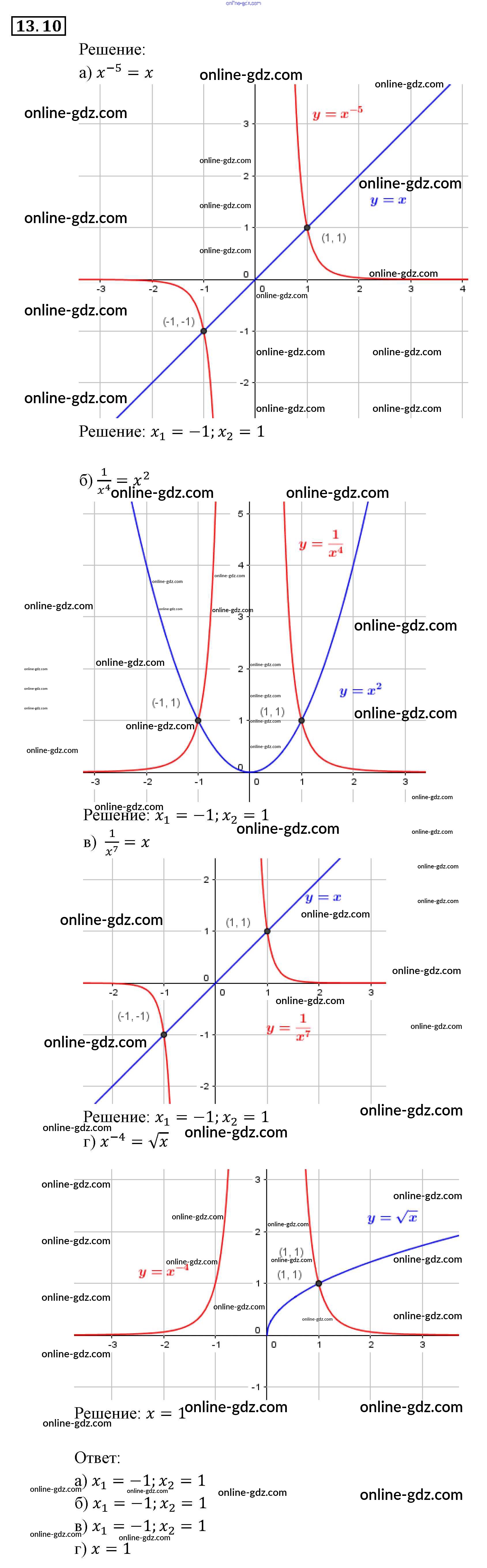 Готовые домашние задания по Алгебре за 9 класс Задачник Мордкович, Александрова 2010 - §13. Функции y = x⁻ⁿ (n ∈ N), их свойства и графики Глава 3. Числовые функции 13.10