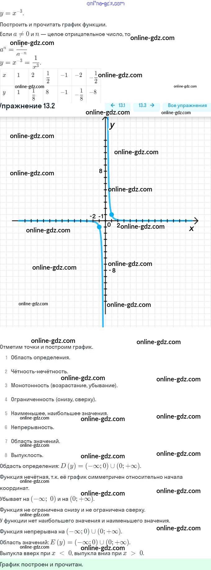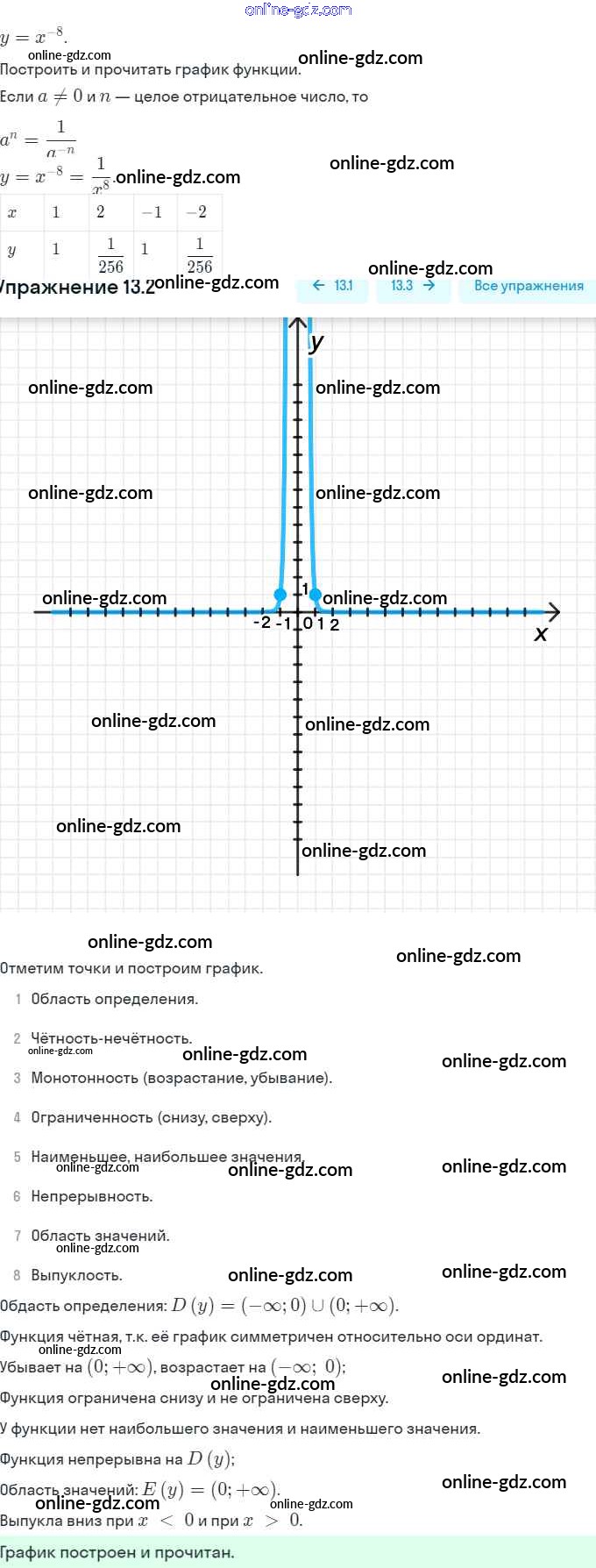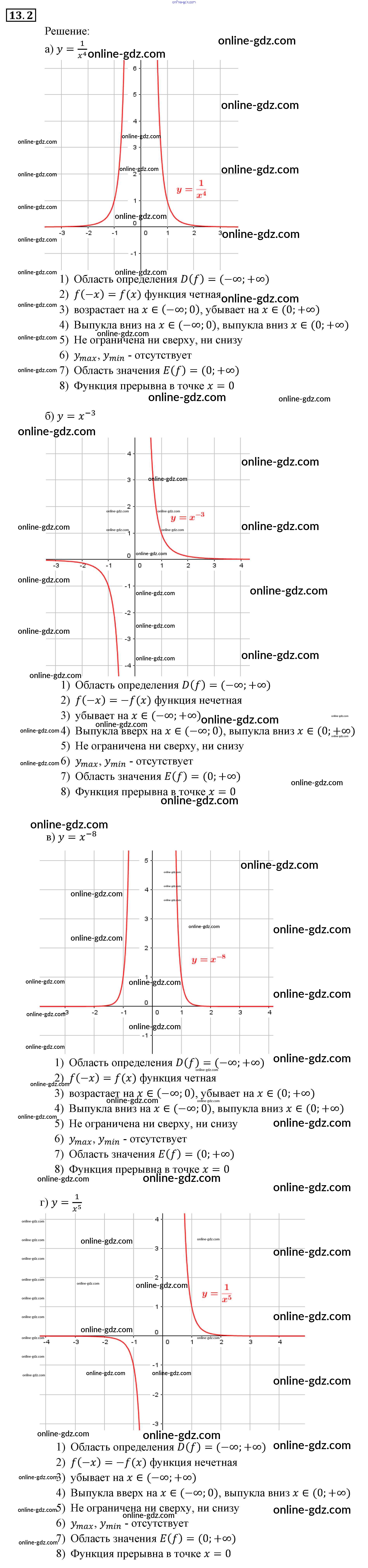 Готовые домашние задания по Алгебре за 9 класс Задачник Мордкович, Александрова 2010 - §13. Функции y = x⁻ⁿ (n ∈ N), их свойства и графики Глава 3. Числовые функции 13.2