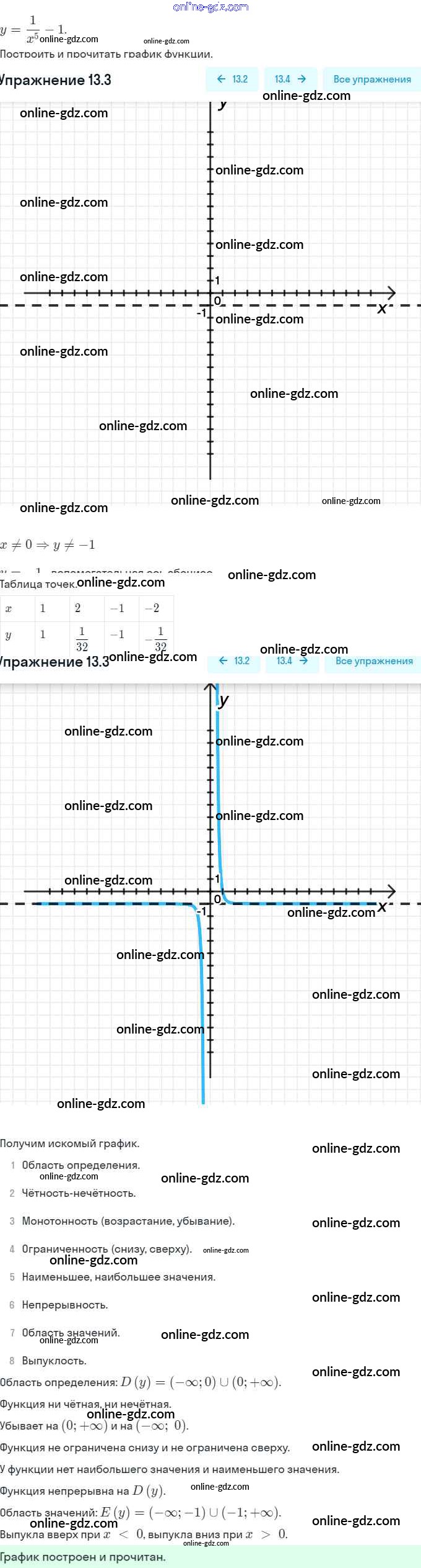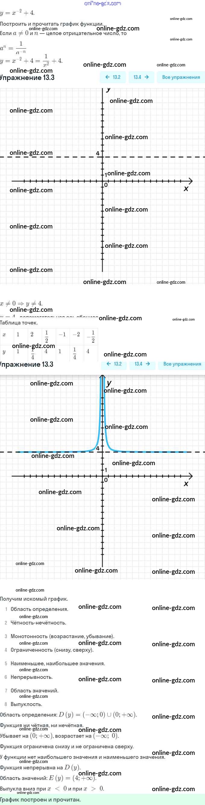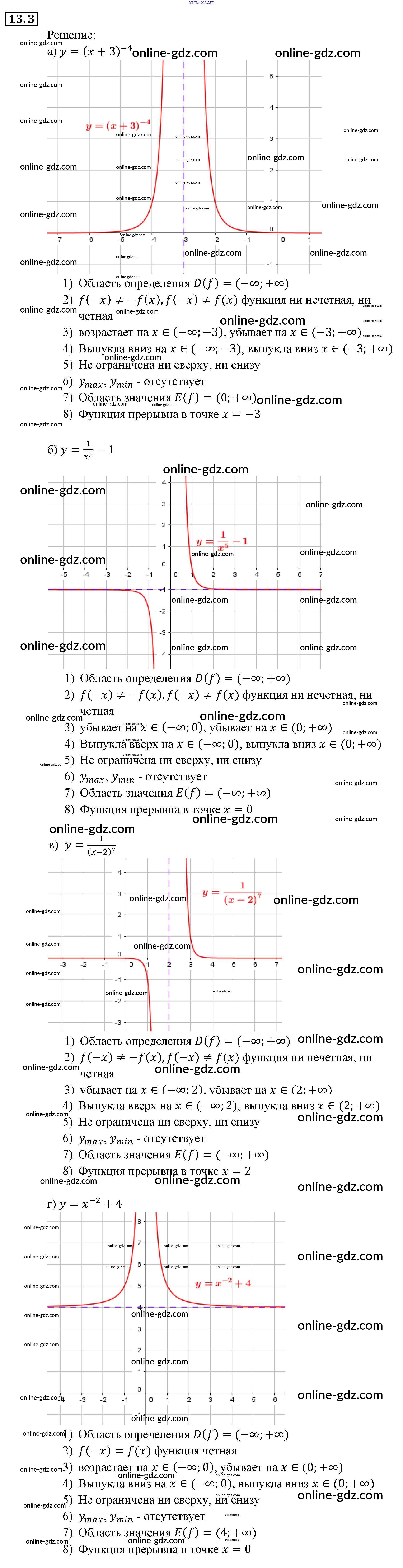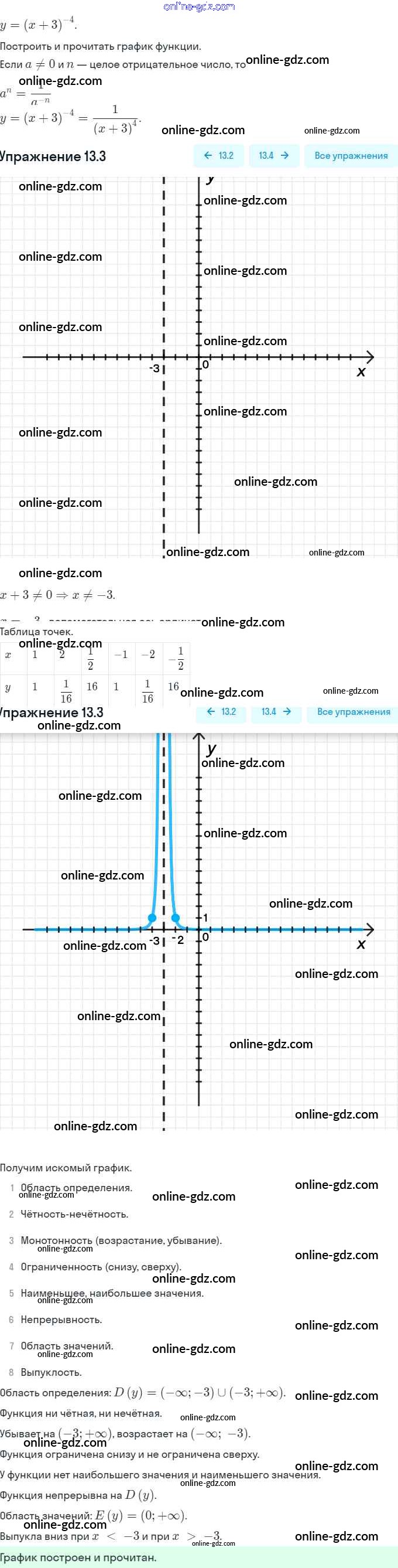 Готовые домашние задания по Алгебре за 9 класс Задачник Мордкович, Александрова 2010 - §13. Функции y = x⁻ⁿ (n ∈ N), их свойства и графики Глава 3. Числовые функции 13.3