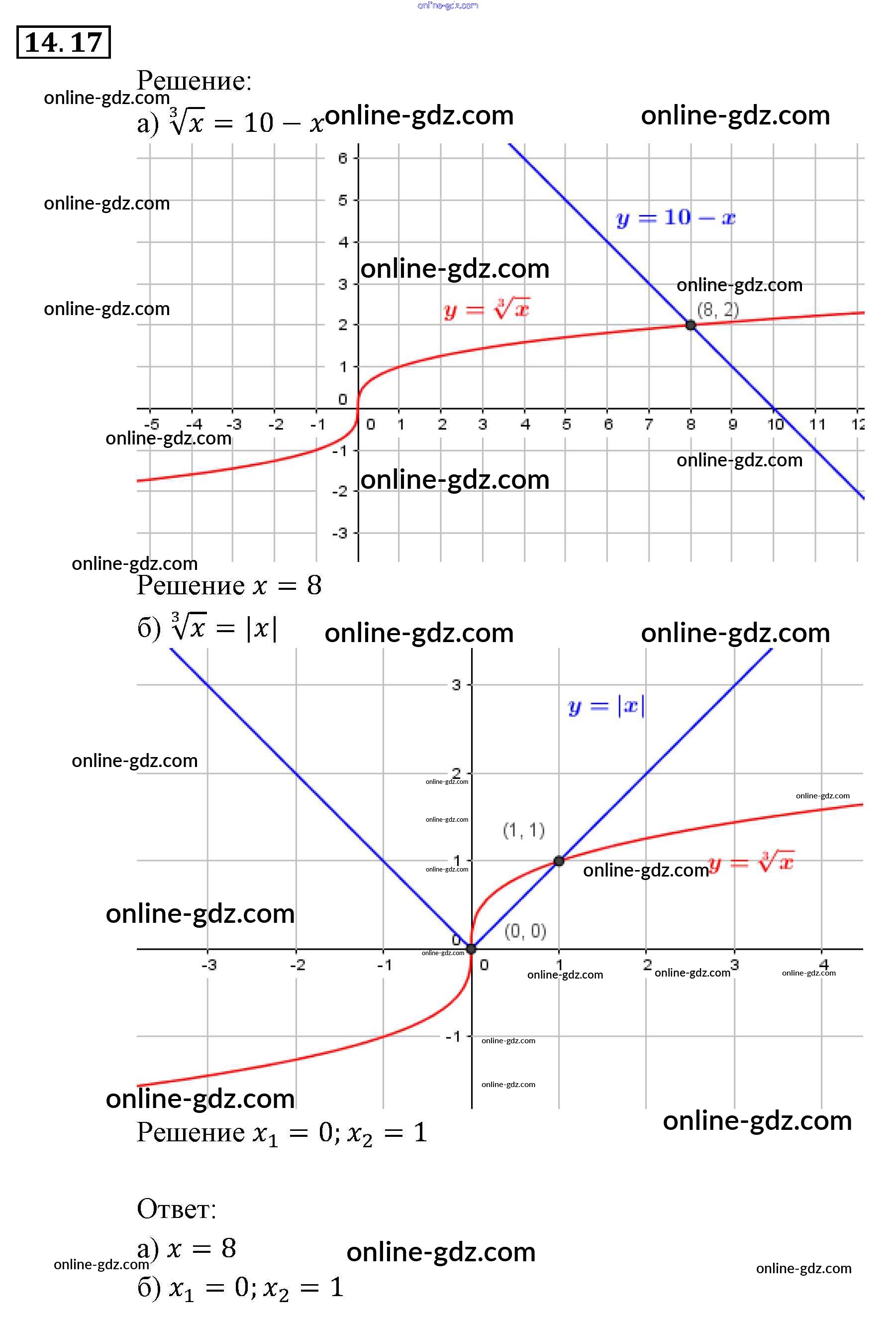 Готовые домашние задания по Алгебре за 9 класс Задачник Мордкович, Александрова 2010 - §14. Функция y = ∛x, её свойства и график Глава 3. Числовые функции 14.17