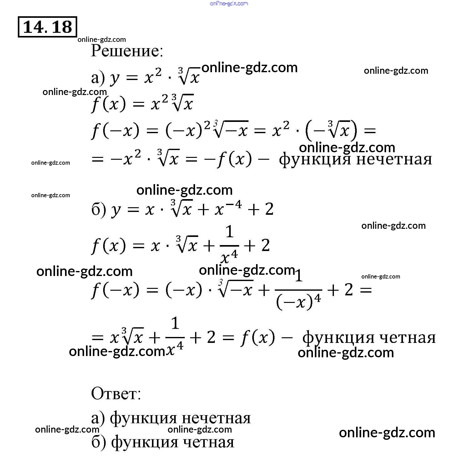 Готовые домашние задания по Алгебре за 9 класс Задачник Мордкович, Александрова 2010 - §14. Функция y = ∛x, её свойства и график Глава 3. Числовые функции 14.18