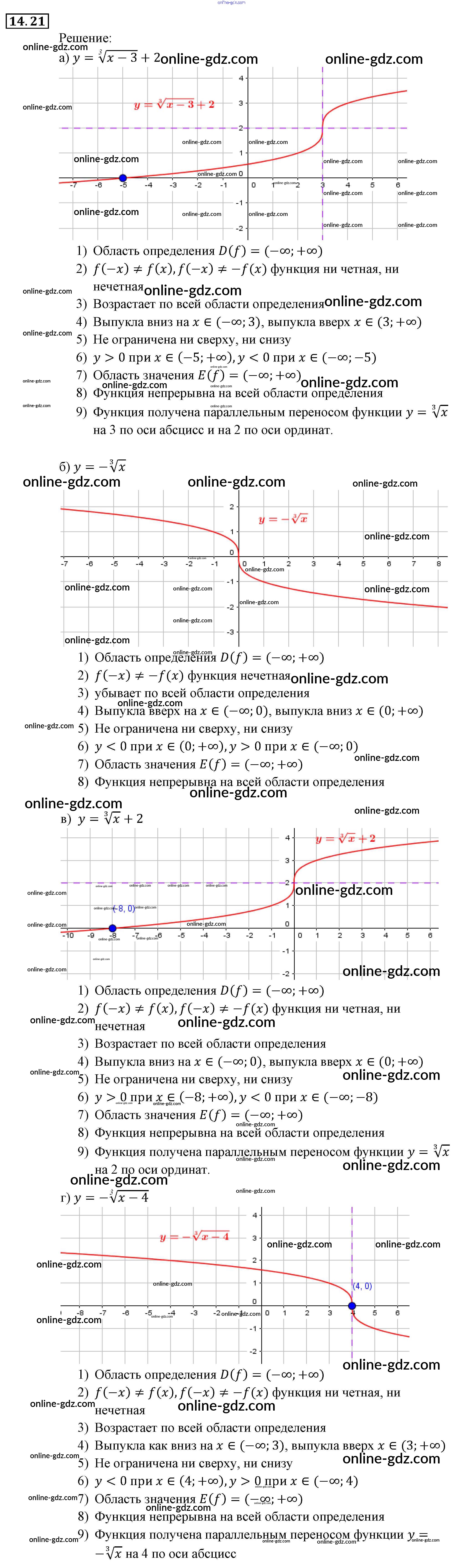 Готовые домашние задания по Алгебре за 9 класс Задачник Мордкович, Александрова 2010 - §14. Функция y = ∛x, её свойства и график Глава 3. Числовые функции 14.21