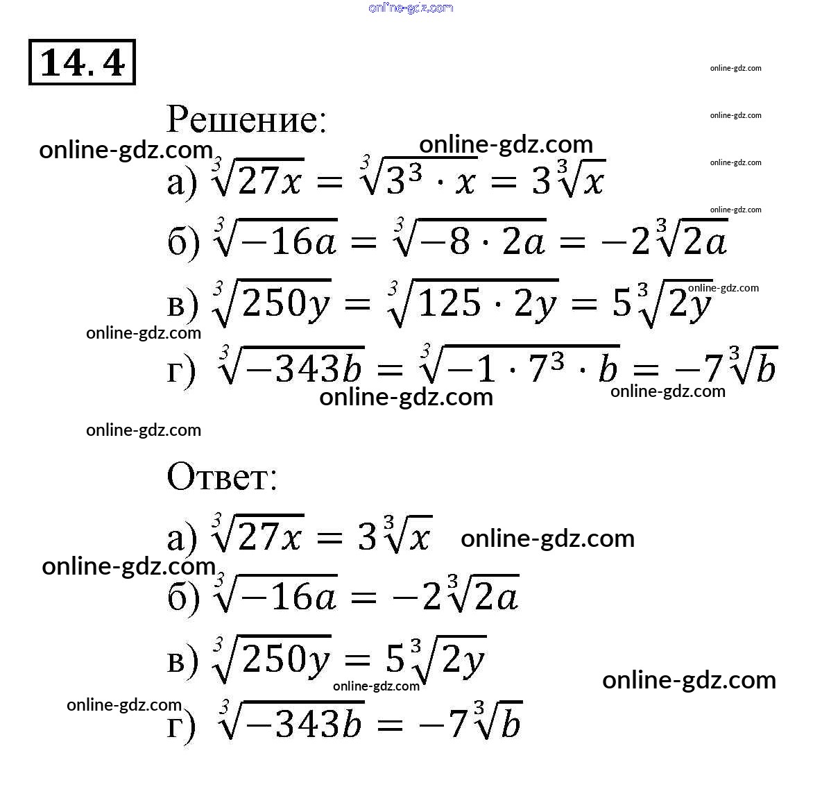 Готовые домашние задания по Алгебре за 9 класс Задачник Мордкович, Александрова 2010 - §14. Функция y = ∛x, её свойства и график Глава 3. Числовые функции 14.4