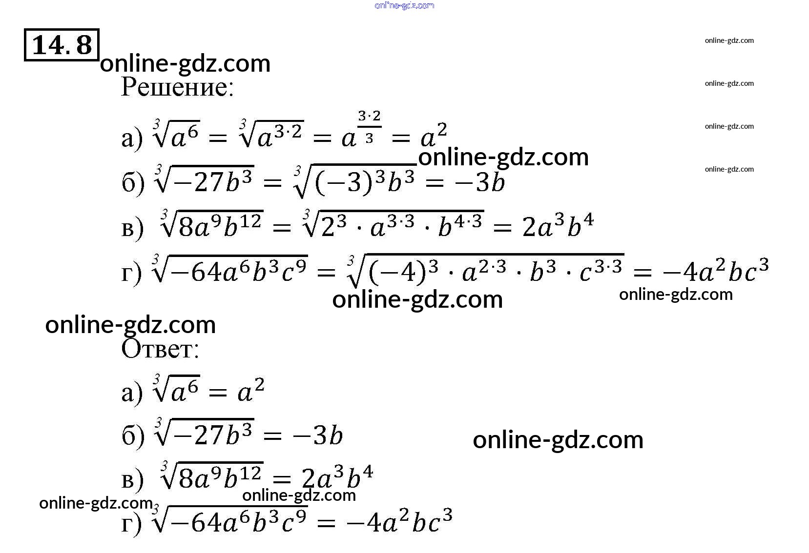 Готовые домашние задания по Алгебре за 9 класс Задачник Мордкович, Александрова 2010 - §14. Функция y = ∛x, её свойства и график Глава 3. Числовые функции 14.8