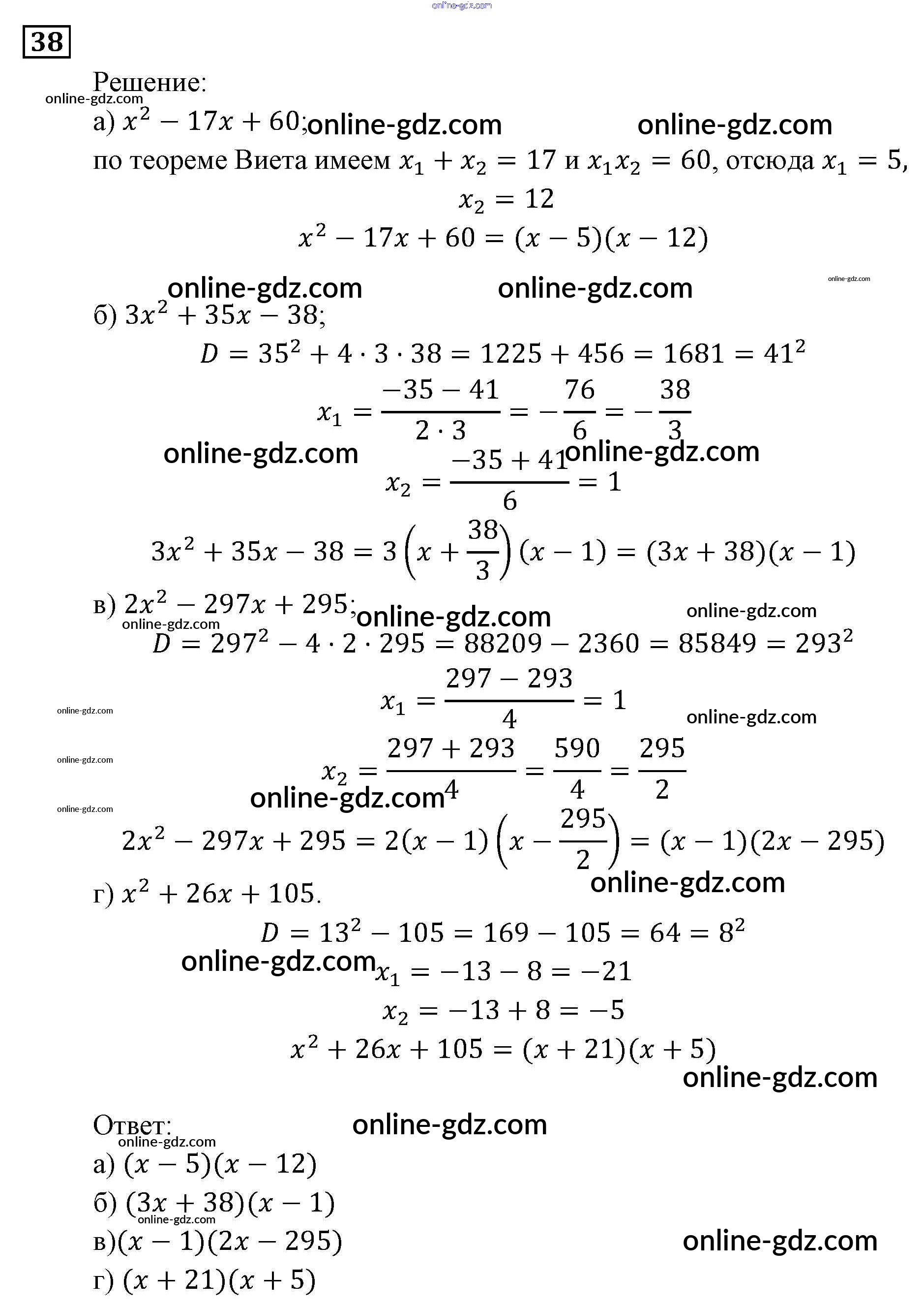 Готовые домашние задания по Алгебре за 9 класс Задачник Мордкович, Александрова 2010 - Повторение 38