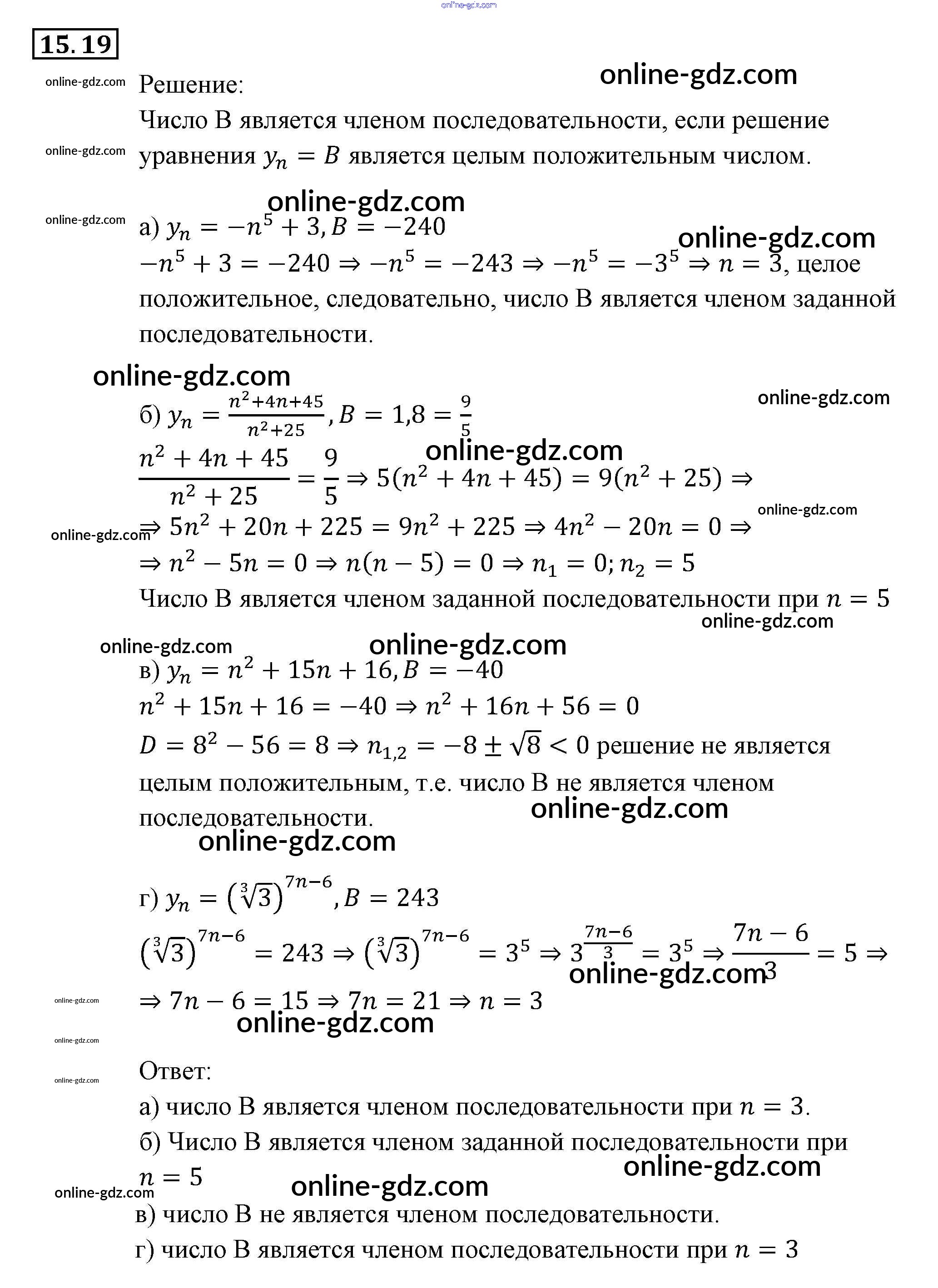 Готовые домашние задания по Алгебре за 9 класс Задачник Мордкович, Александрова 2010 - § 15. Числовые последовательности Глава 4. Прогрессии 15.19