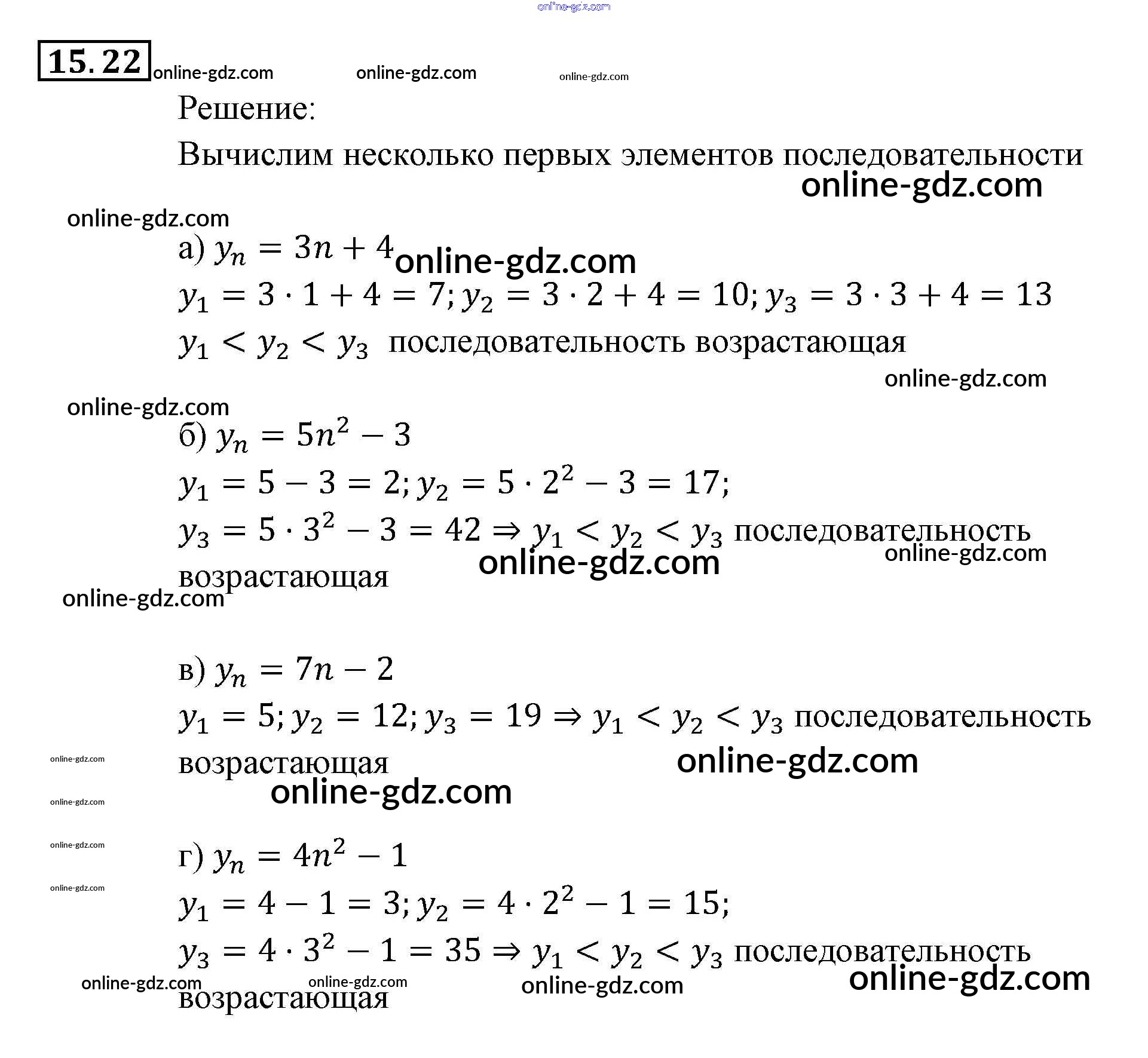 Готовые домашние задания по Алгебре за 9 класс Задачник Мордкович, Александрова 2010 - § 15. Числовые последовательности Глава 4. Прогрессии 15.22