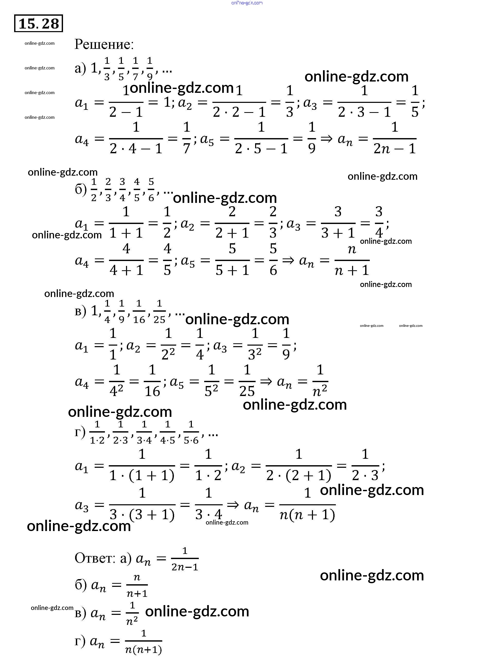 Готовые домашние задания по Алгебре за 9 класс Задачник Мордкович, Александрова 2010 - § 15. Числовые последовательности Глава 4. Прогрессии 15.28