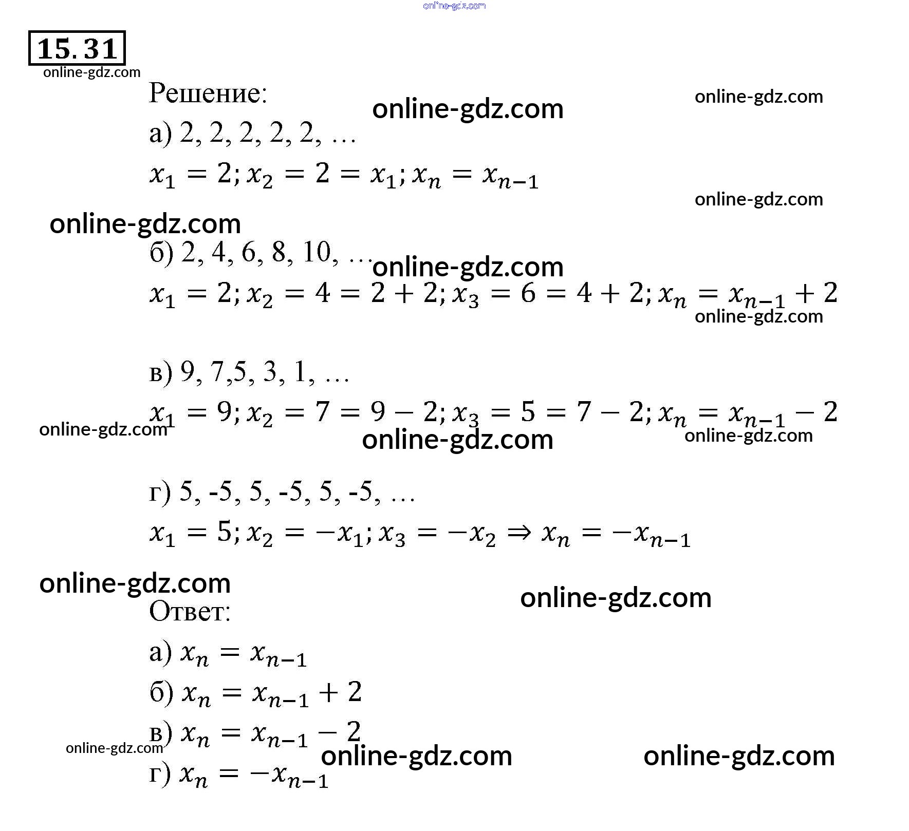 Готовые домашние задания по Алгебре за 9 класс Задачник Мордкович, Александрова 2010 - § 15. Числовые последовательности Глава 4. Прогрессии 15.31