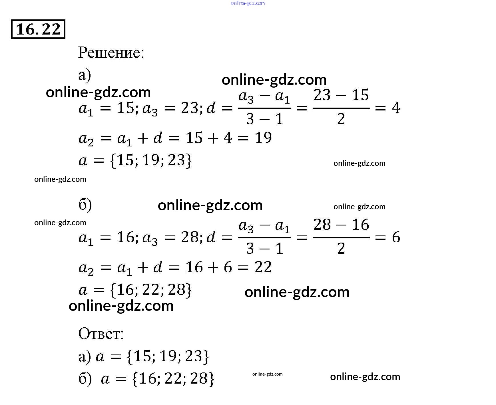 Готовые домашние задания по Алгебре за 9 класс Задачник Мордкович, Александрова 2010 - § 16. Арифметическая прогрессия Глава 4. Прогрессии 16.22
