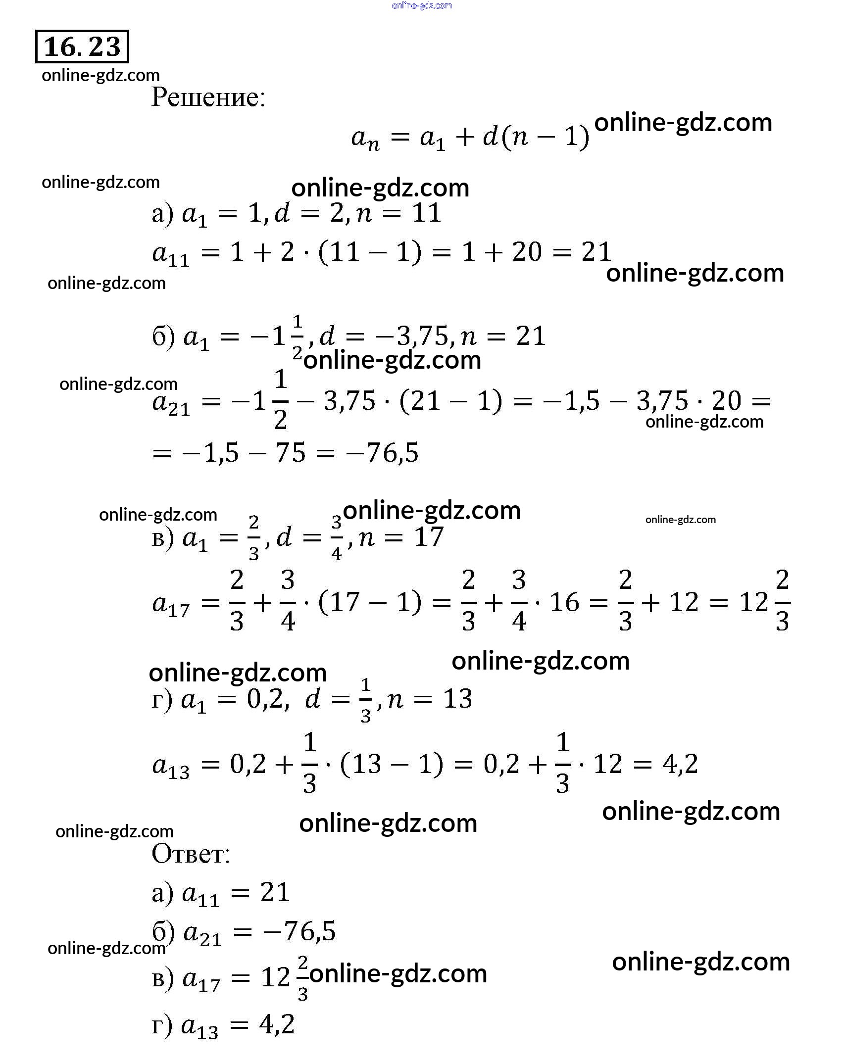Готовые домашние задания по Алгебре за 9 класс Задачник Мордкович, Александрова 2010 - § 16. Арифметическая прогрессия Глава 4. Прогрессии 16.23