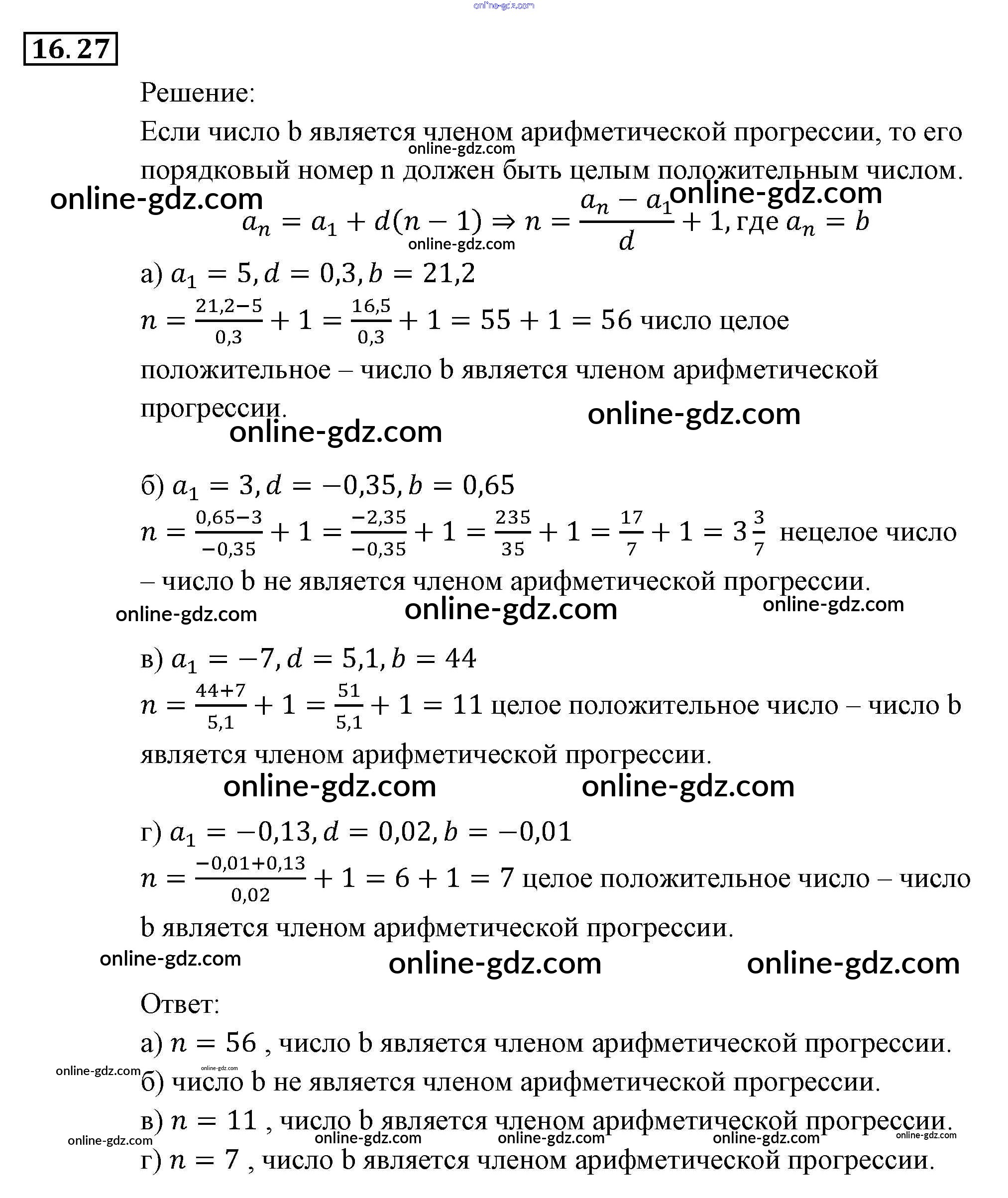 Готовые домашние задания по Алгебре за 9 класс Задачник Мордкович, Александрова 2010 - § 16. Арифметическая прогрессия Глава 4. Прогрессии 16.27