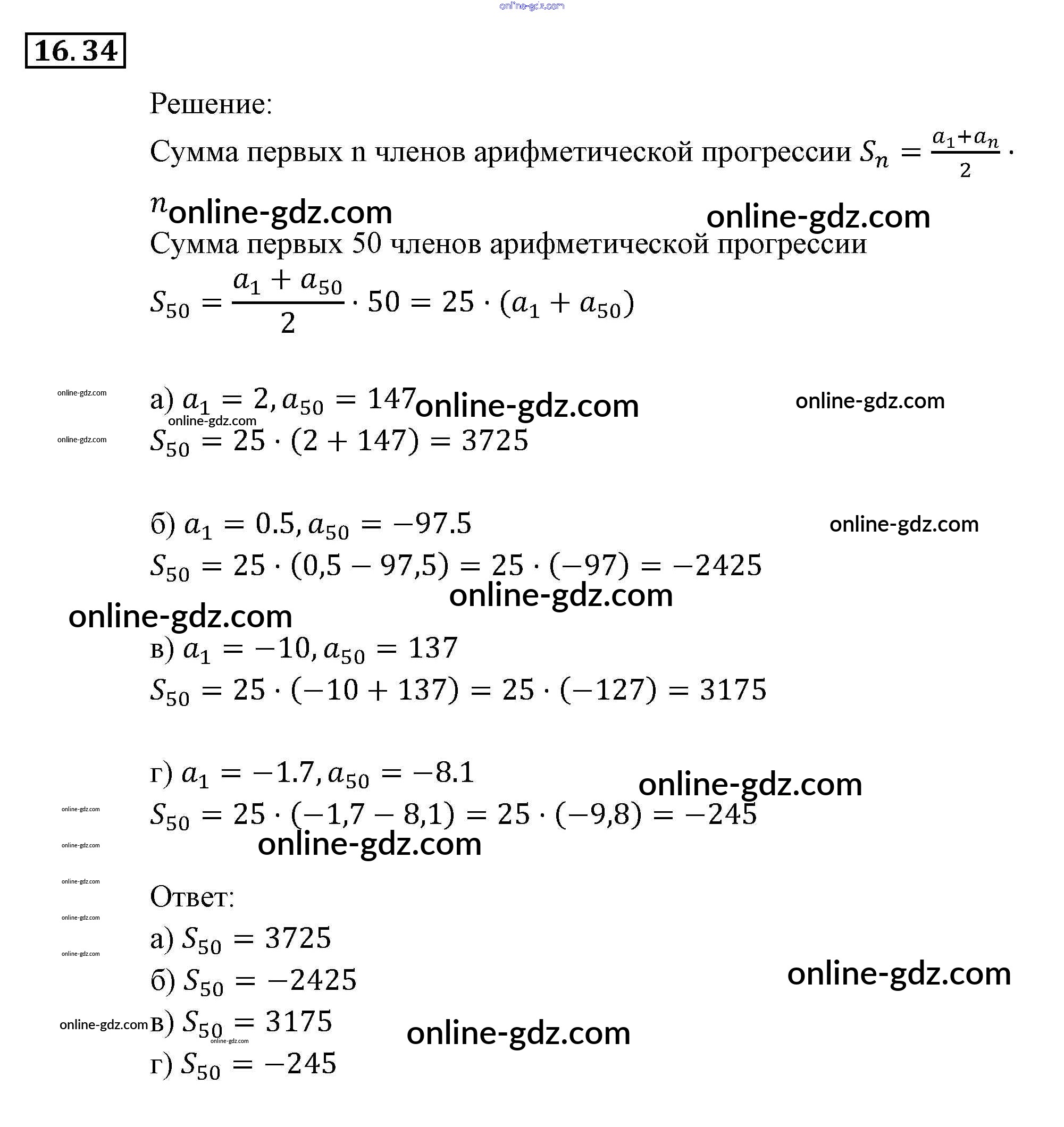 Готовые домашние задания по Алгебре за 9 класс Задачник Мордкович, Александрова 2010 - § 16. Арифметическая прогрессия Глава 4. Прогрессии 16.34