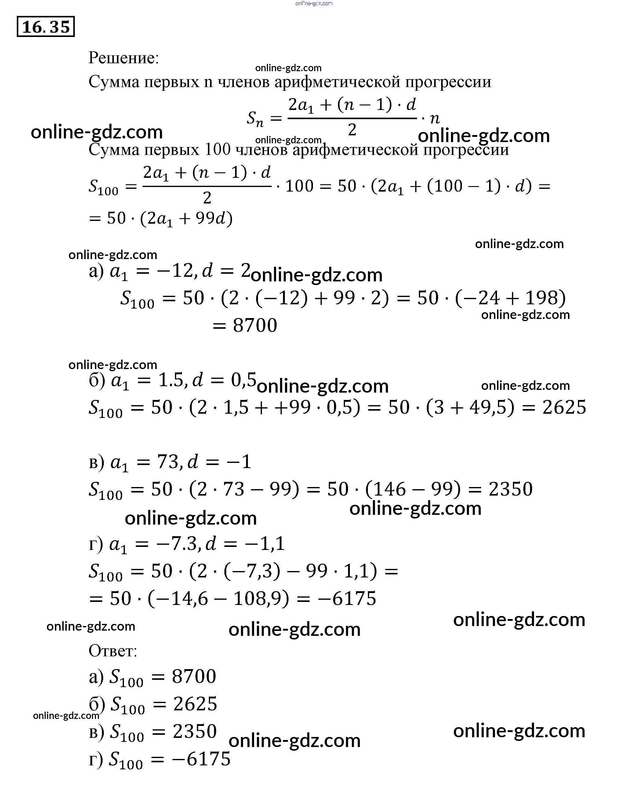 Готовые домашние задания по Алгебре за 9 класс Задачник Мордкович, Александрова 2010 - § 16. Арифметическая прогрессия Глава 4. Прогрессии 16.35