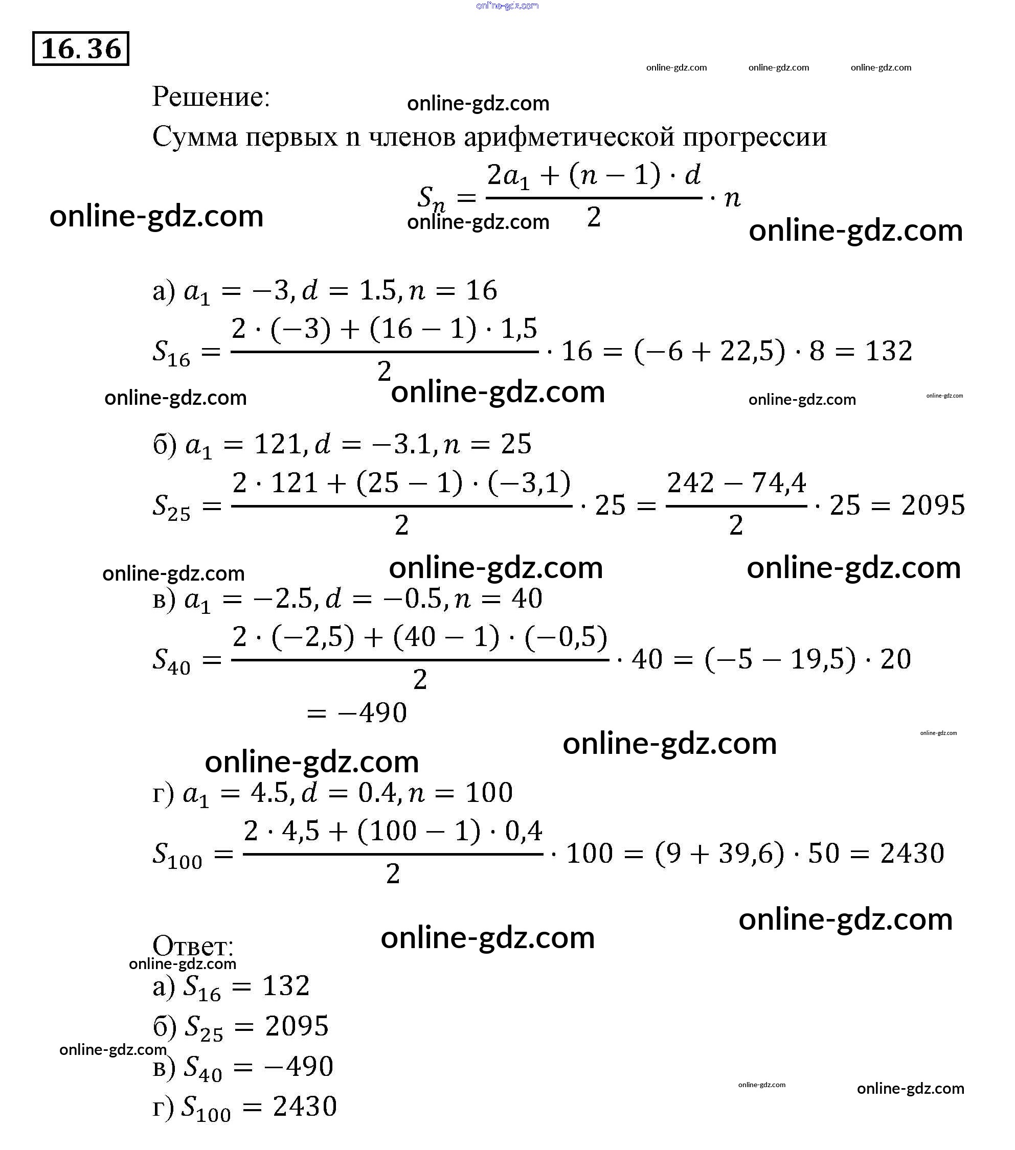 Готовые домашние задания по Алгебре за 9 класс Задачник Мордкович, Александрова 2010 - § 16. Арифметическая прогрессия Глава 4. Прогрессии 16.36