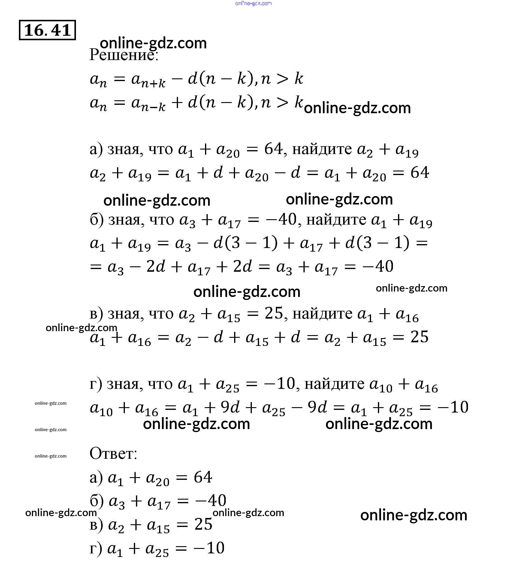 Готовые домашние задания по Алгебре за 9 класс Задачник Мордкович, Александрова 2010 - § 16. Арифметическая прогрессия Глава 4. Прогрессии 16.41