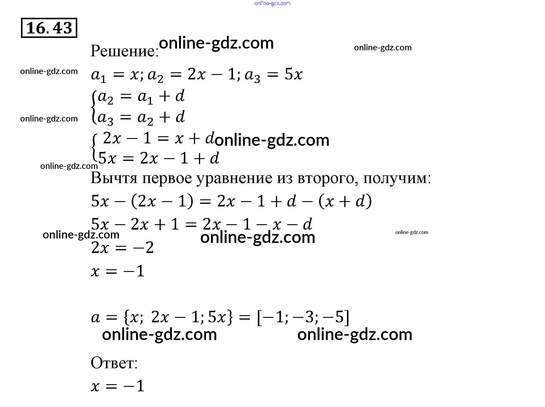 Готовые домашние задания по Алгебре за 9 класс Задачник Мордкович, Александрова 2010 - § 16. Арифметическая прогрессия Глава 4. Прогрессии 16.43