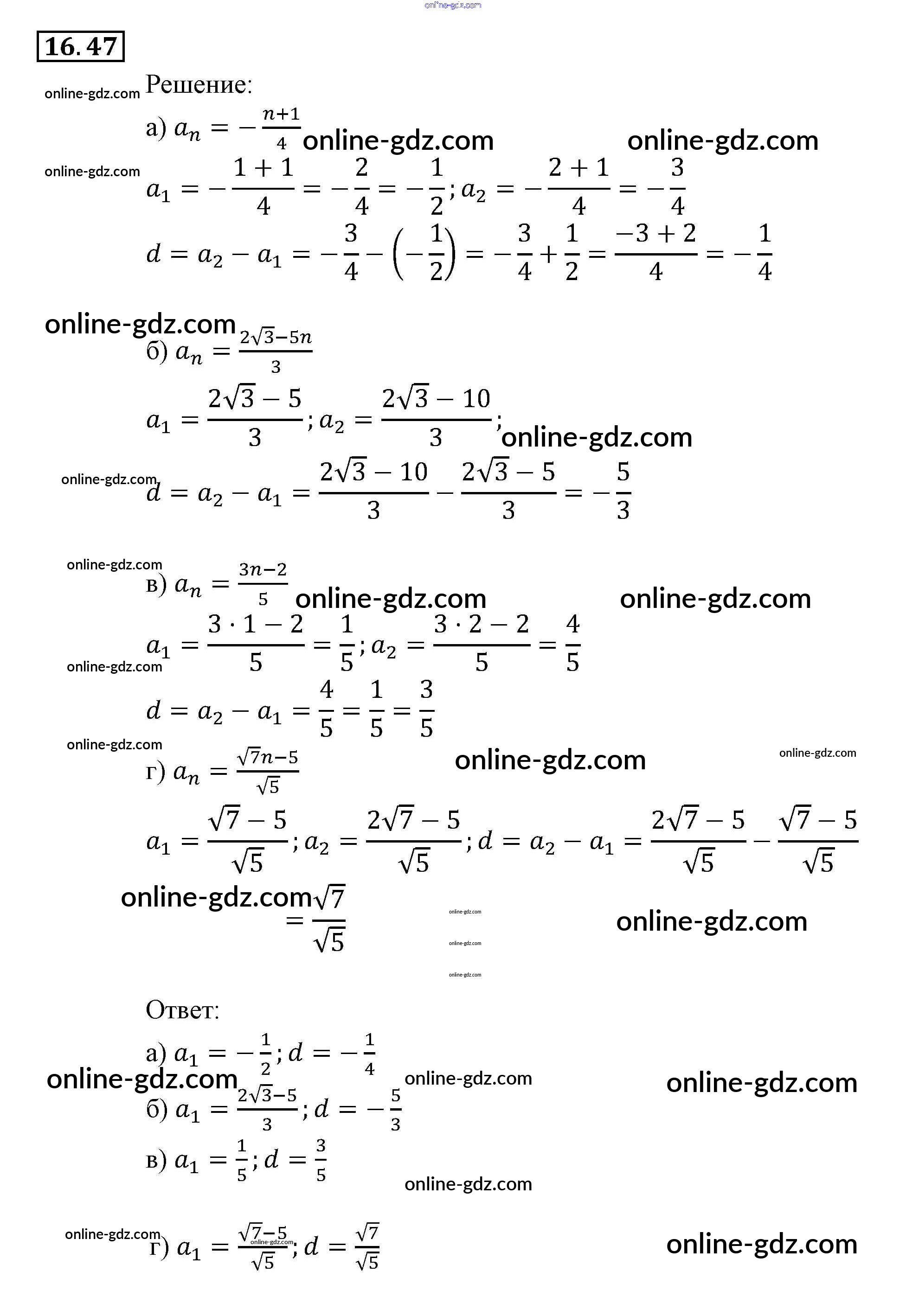 Готовые домашние задания по Алгебре за 9 класс Задачник Мордкович, Александрова 2010 - § 16. Арифметическая прогрессия Глава 4. Прогрессии 16.47