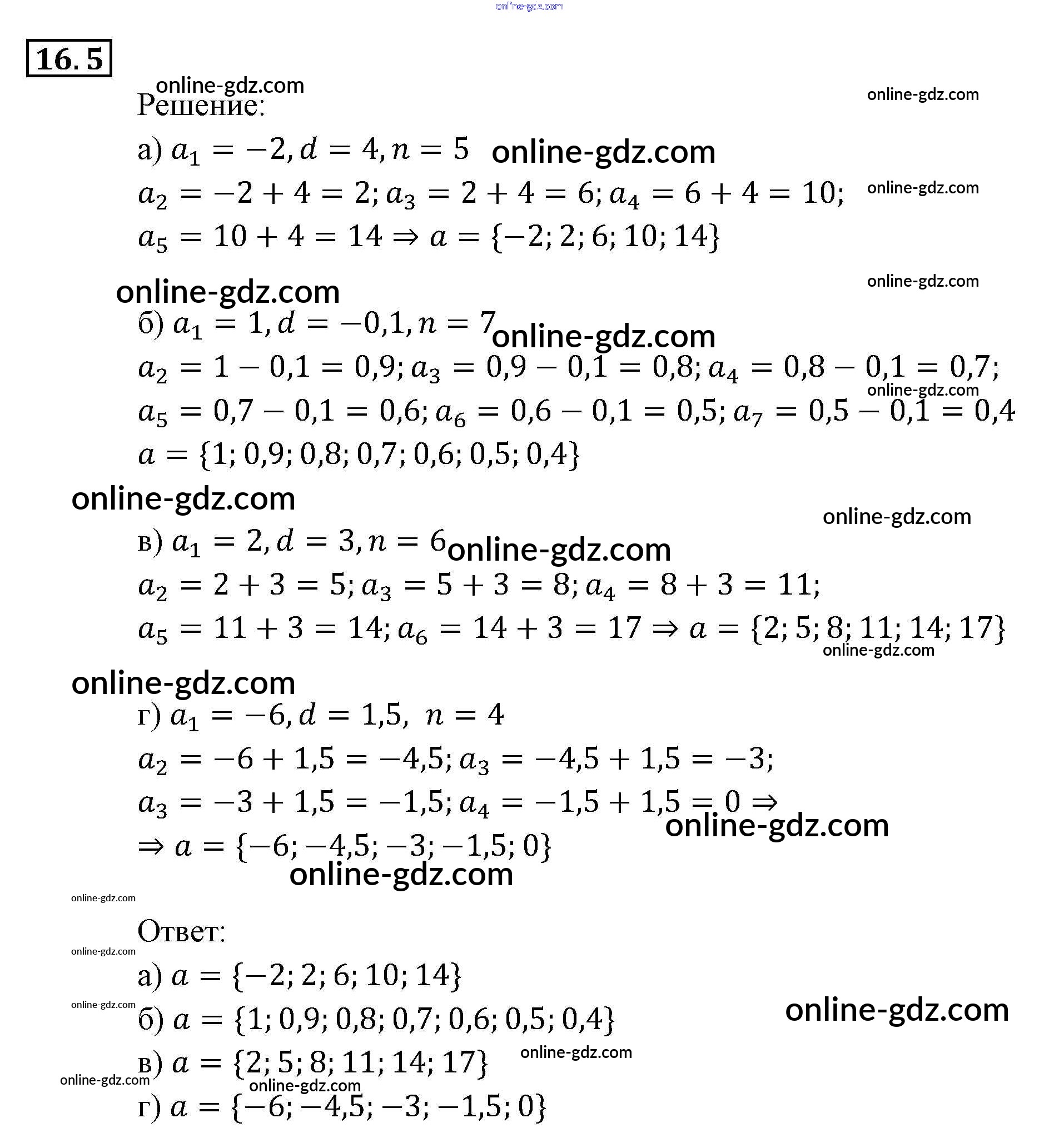 Готовые домашние задания по Алгебре за 9 класс Задачник Мордкович, Александрова 2010 - § 16. Арифметическая прогрессия Глава 4. Прогрессии 16.5